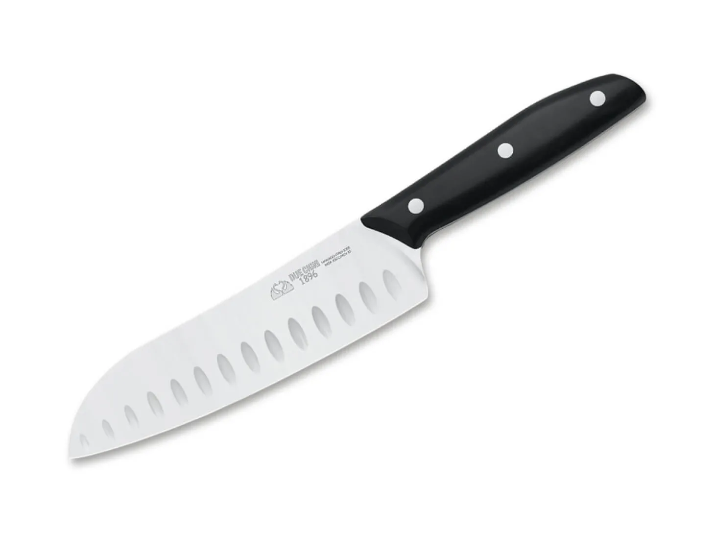 Mit der Serie 1896 stellt Due Cigni eine besonders hochwertige Küchenmesserserie vor, die das Sortiment des Herstellers aus der traditionellen Messerstadt Maniago krönt. Mit Griffen aus widerstandsfähigem POM liegen die Messer ausgezeichnet in der Hand, wobei die klassische Vernietung die optische und haptische Balance perfektioniert. Für die Klingen kommt der bewährte X50CrMoV15 zum Einsatz, der Schnitthaltigkeit und Korrosionresistenz perfekt vereint.Ein Messer, das sich auch in Europa immer größerer Beliebtheit erfreut, ist das Santoku. Es ist ursprünglich eine japanische Klingenform für ein Allzweckmesser. Übersetzt bedeutet dessen Name „Die drei Tugenden“, es ist für Fleisch, Fisch und Gemüse gleichermaßen gut geeignet. Dank der breiten Klinge lässt sich das Santoku besonders einfach handhaben.