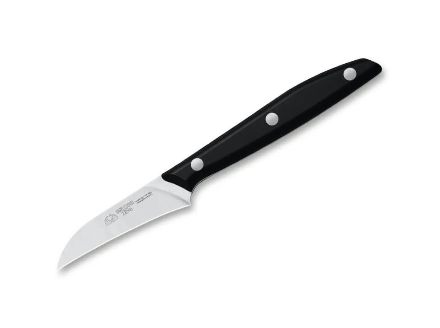 Mit der Serie 1896 stellt Due Cigni eine besonders hochwertige Küchenmesserserie vor, die das Sortiment des Herstellers aus der traditionellen Messerstadt Maniago krönt. Mit Griffen aus widerstandsfähigem POM liegen die Messer ausgezeichnet in der Hand, wobei die klassische Vernietung die optische und haptische Balance perfektioniert. Für die Klingen kommt der bewährte X50CrMoV15 zum Einsatz, der Schnitthaltigkeit und Korrosionresistenz perfekt vereint.Das Schälmesser ist besonders handlich und verfügt über eine kurze Klinge. Alle kleineren Arbeiten in der Küche werden mit diesem Messer durchgeführt. Zu den Hauptaufgaben gehört, wie der Name schon sagt, das Schälen von Obst und Gemüse. Es ist perfekt geeignet, um dicht an der Schale entlangzuschneiden.