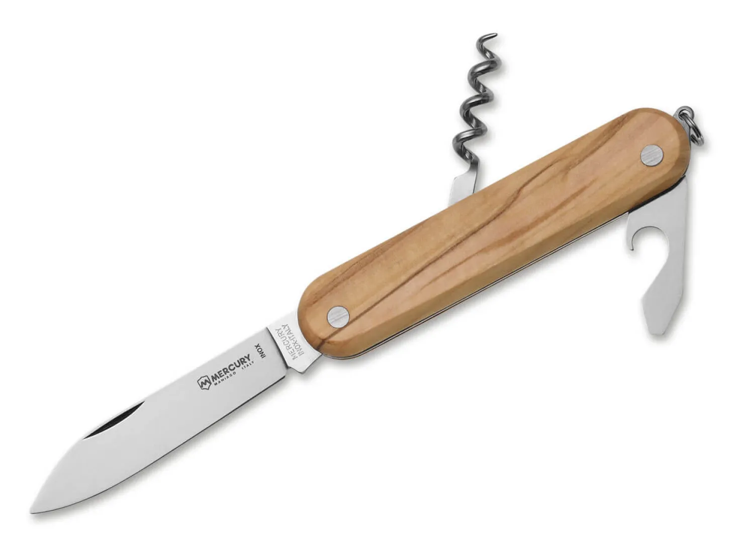 Das Mercury 913-3LC setzt auf Understatement und punktet mit seiner eleganten Schlichtheit. Das klassische Messer öffnet die Klinge aus 420 per Nagelhau und verriegelt nicht. Korkenzieher und Kapselheber machen das Slipjoint Messer zu einem unverzichten Begleiter für jedes Picknick. Guten Halt versprechen die balligen Griffschalen aus Olivenholz. Mit Fangriemenöse.