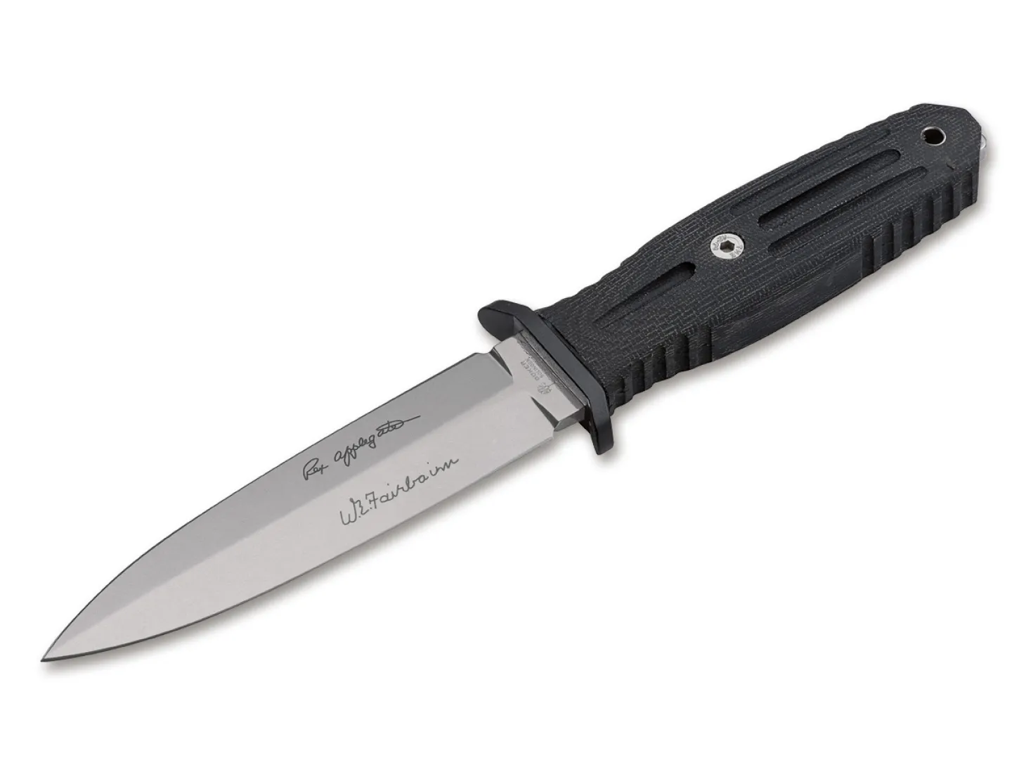 Kaum ein anderer Messermacher hat das Feld der taktischen Einsatzmesser so sehr geprägt wie William H. „Bill“ Harsey, seine Entwürfe haben ihm einen ausgezeichneten Ruf in der Messerwelt eingebracht. Die von ihm entworfene Modifikation des legendären Böker Applegate-Fairbairn verbindet das von vielen Eliteeinheiten im Einsatz genutze Messer mit modernen Elementen. Die größere Klingenbreite und die günstigere Geometrie der beidseitig geschliffenen Klinge aus 154CM verbessern die Schneideigenschaften, während die Klingenlänge einen optimalen Kompromiss aus Führigkeit und Nutzwert bietet. Die Klinge ist mit einem robusten Stonewash-Finish versehen. Der am Griffende hervorstehende Klingenerl kann unter anderem als Glasbrecher eingesetzt werden. Die CNC-gefrästen Griffschalen aus schwarzem Canvas-Micarta sind äußerst belastbar, angenehm strukturiert und bieten selbst bei Feuchtigkeit hervorragenden Grip. Lieferung mit schwarzer Lederscheide.
