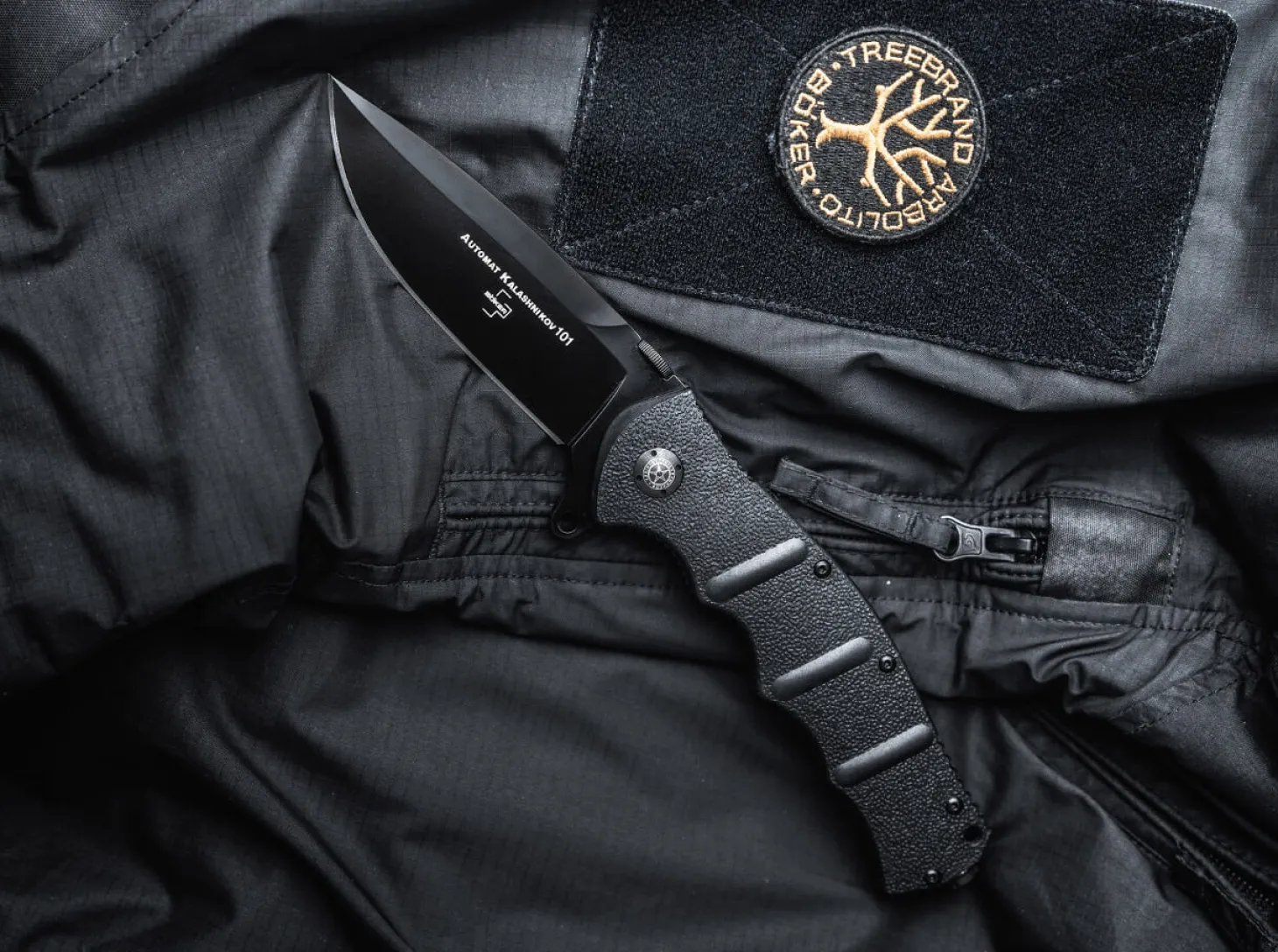 Das Böker Plus AK-101 2.0 aus der Kalashnikov-Serie ist ein ausgewachsenes Heavy Duty-Messer, das sowohl für den taktischen Einsatz als auch zur Outdoor-Anwendung geeignet ist. Der Griff aus hochfestem Kunststoff liegt dank der strukturierten Oberfläche, den typischen Querstegen sowie der Fingerrillen sicher in der Hand. Die Riffelungen im Bereich der Daumenauflage garantieren zudem kontrolliertes Schneiden. In der Version 2.0 wartet das Taschenmesser mit einer schwarz beschichteten Droppoint-Klinge aus D2 auf, die selbst mit Handschuhen per Flipper oder beidseitig erreichbarem Daumenheber problemlos geöffnet werden kann. Der Glasbrecher am Griffende erweitert das Anwendungsspektrum noch einmal erheblich. Die unter der Griffschale gelagerten Stahl-Liner verleihen der gesamten Konstruktion die nötige Stabilität. Verriegelt wird das Taschenmesser durch den zuverlässigen Liner Lock-Verschluss. Mit Fangriemenöse und Clip (Tip-up/r).
