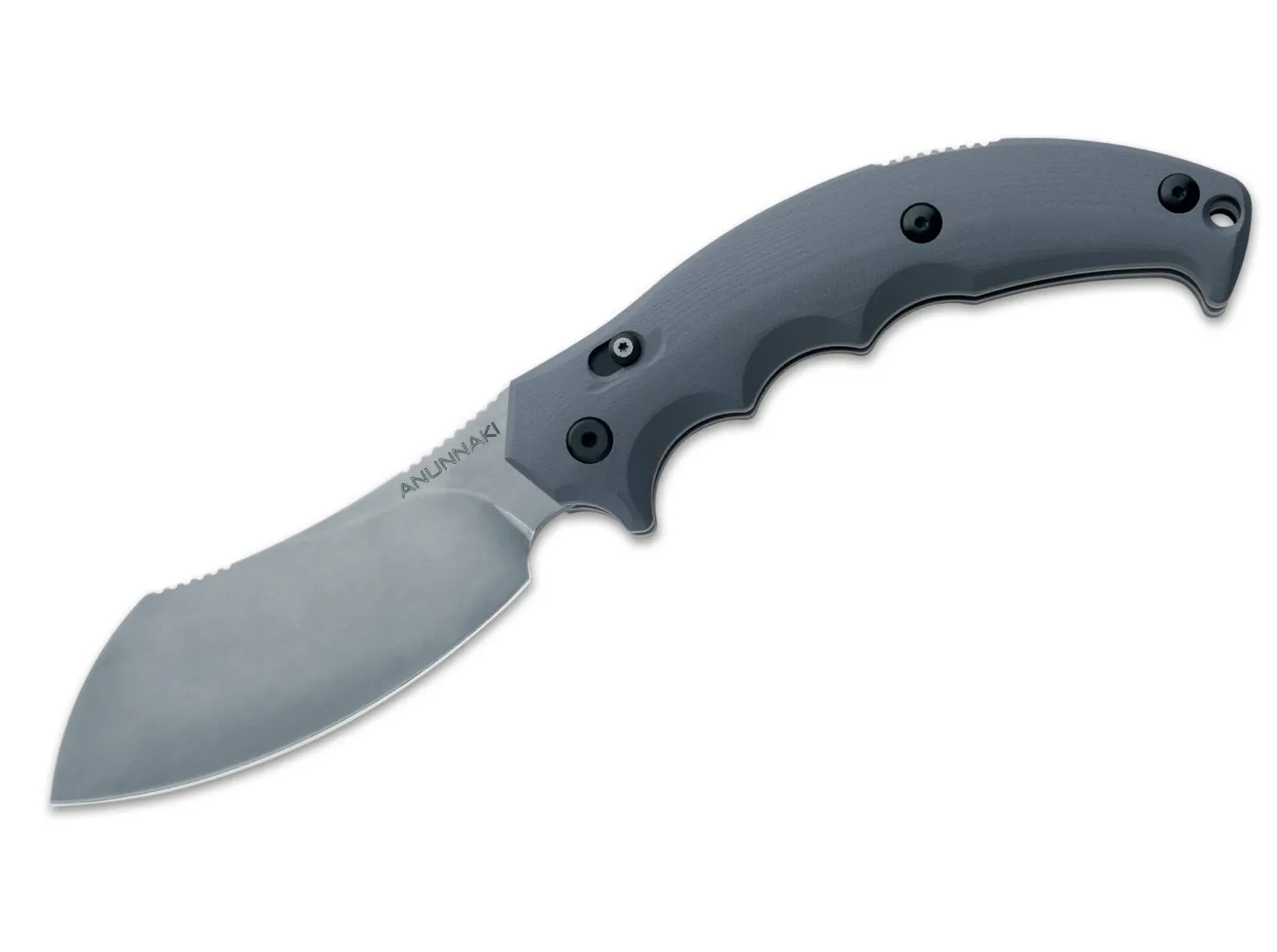 In der Mythologie des vorderasiatischen Zweistromlandes sind die Anunnaki die Götter der Unterwelt, die denen des Himmels gegenüberstehen. Der neue Anunnaki Folder versieht seinen Dienst auch zuverlässig auf der Erde, denn eine gewisse Bodenständigkeit ist dem Anunnaki sicher nicht abzusprechen. Die massive Bauart und der ausgewachsene Griff, der unterschiedlichste Handhaltungen ermöglicht (kurz für feine Schneidarbeiten, oder weit hinten, für kräftige, schwungvolle Schnitte), machen das Anunnaki zu einem Outdoorfolder erster Wahl. Die gleiche Zusatzverriegelung, die den Backlock im harten Einsatz zusätzlich sichert, kam auch schon erfolgreich beim Meskwaki Tracker zum Einsatz und verleiht dem offenen Messer eine Stabilität, die einem feststehenden Messer sehr nahe kommt. Die bauchige Klinge macht auch einen jagdlichen Einsatz (als Skinner) möglich und bietet bei einer Vielzahl von Anwendungen maximales Schneidpotential. Griffbeschalung aus G10. Klingenstahl N690. Lieferung mit stabiler Nylon-Gürteltasche.