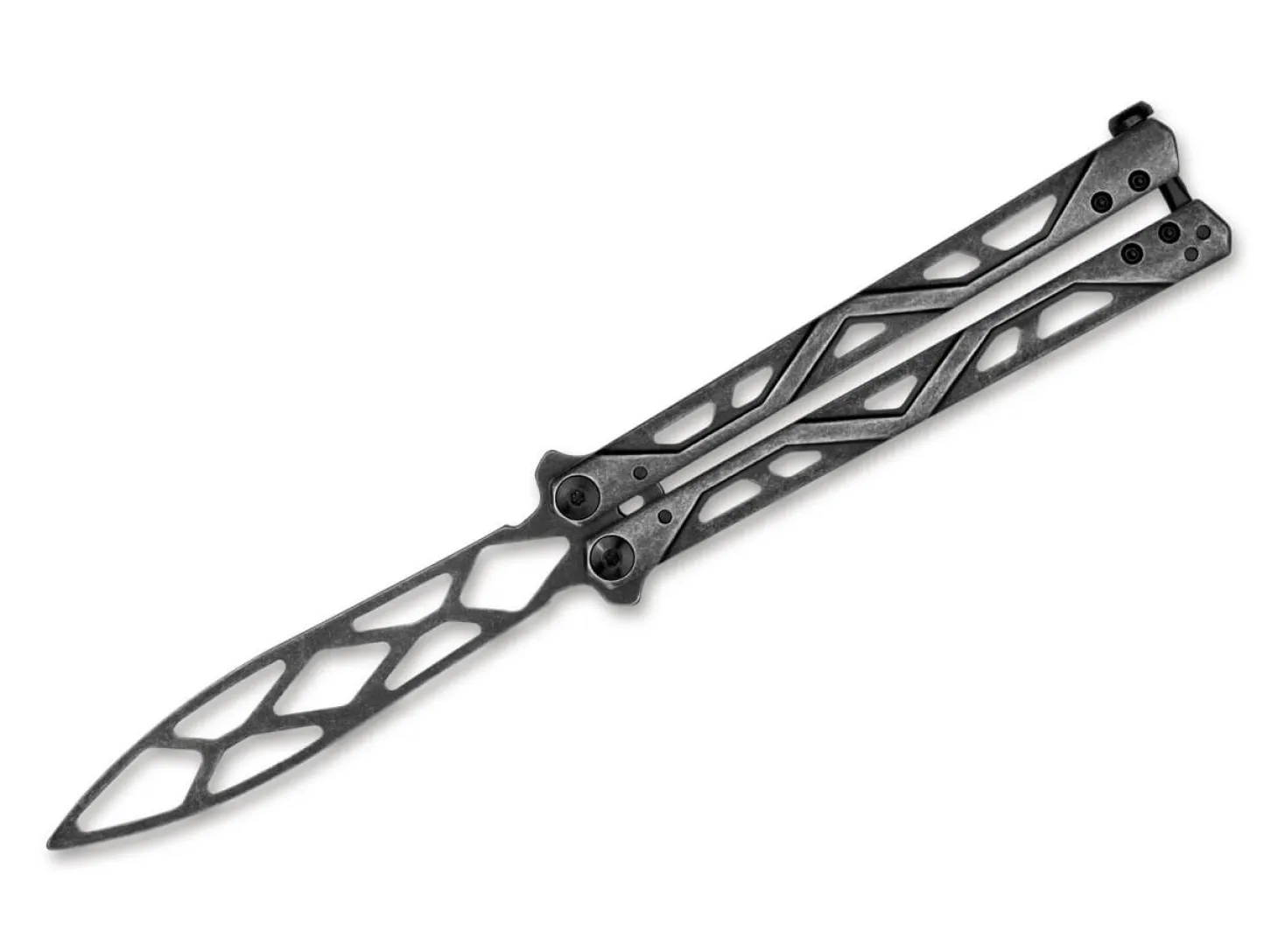 Das ausgewogene Balanza vermittelt die Funktionsweise von Butterfly Messern in entspannter und spielerischer Weise. Dank abgerundeter Spitze und stumpfer Klinge wird das Risiko von versehentlichen Schnitten im Keim erstickt. Die Konstruktion aus rostfreiem Stahl ist so definiert, dass sie selbst bei gewagten Tricks hervorragend in der Hand liegt. Zwei kugelgelagerte KVT-Drehpunkte sorgen für einen geschmeidigen Klingengang. Der Balanza verfügt über ein symmetrisches Lochmuster im Griff und sorgt für zusätzlichen Grip bei gleichzeitiger Gewichtsreduzierung – der ästhetische Touch inklusive. Das attraktive BlackWash-Finish rundet das Erscheinungsbild des Trainingsmessers formschön ab.