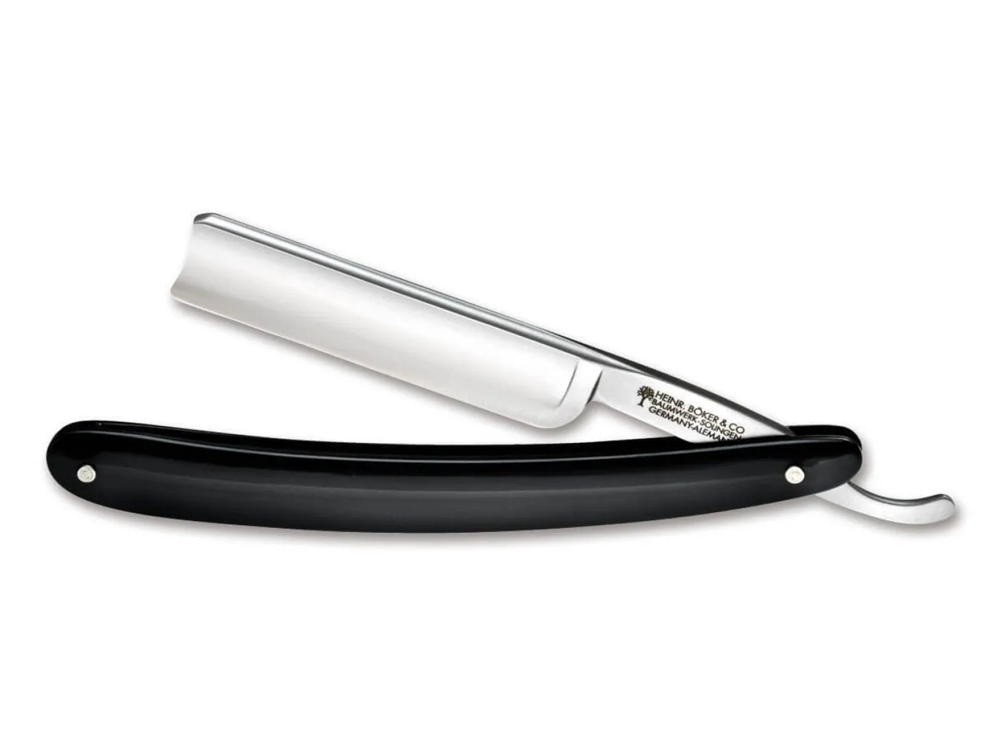 Mit diesem Einstiegsmodell absolvieren wir den Spagat zwischen einer sehr günstigen Preisgestaltung und unseren sehr hohen Qualitätsanforderungen, bei denen wir keinerlei Zugeständnisse machen. Das Ergebnis ist ein Rasiermesser mit einem herausragenden Preis-Leistungs-Verhältnis. Der Spanische Kopf vereint die Vorteile einer 5/8″-Klinge mit der Genauigkeit einer schmaleren Klinge und eignet sich besonders für die genaue Rasur von Konturlinien. Die Klinge besteht aus Kohlenstoffstahl (besonders schnitthaltig, nicht rostfrei) und wird extrahohl mit Wall geschliffen. Die Griffschalen werden aus feuchtigkeitsresistentem schwarzem Spezialkunststoff gefertigt. Komplett von Hand gefertigt in der Böker Messer-Manufaktur Solingen. Inkl. authentischem Böker-Stempel im Klingengang. Auslieferung mit Echtheitszertifikat und in historischer Verpackung.