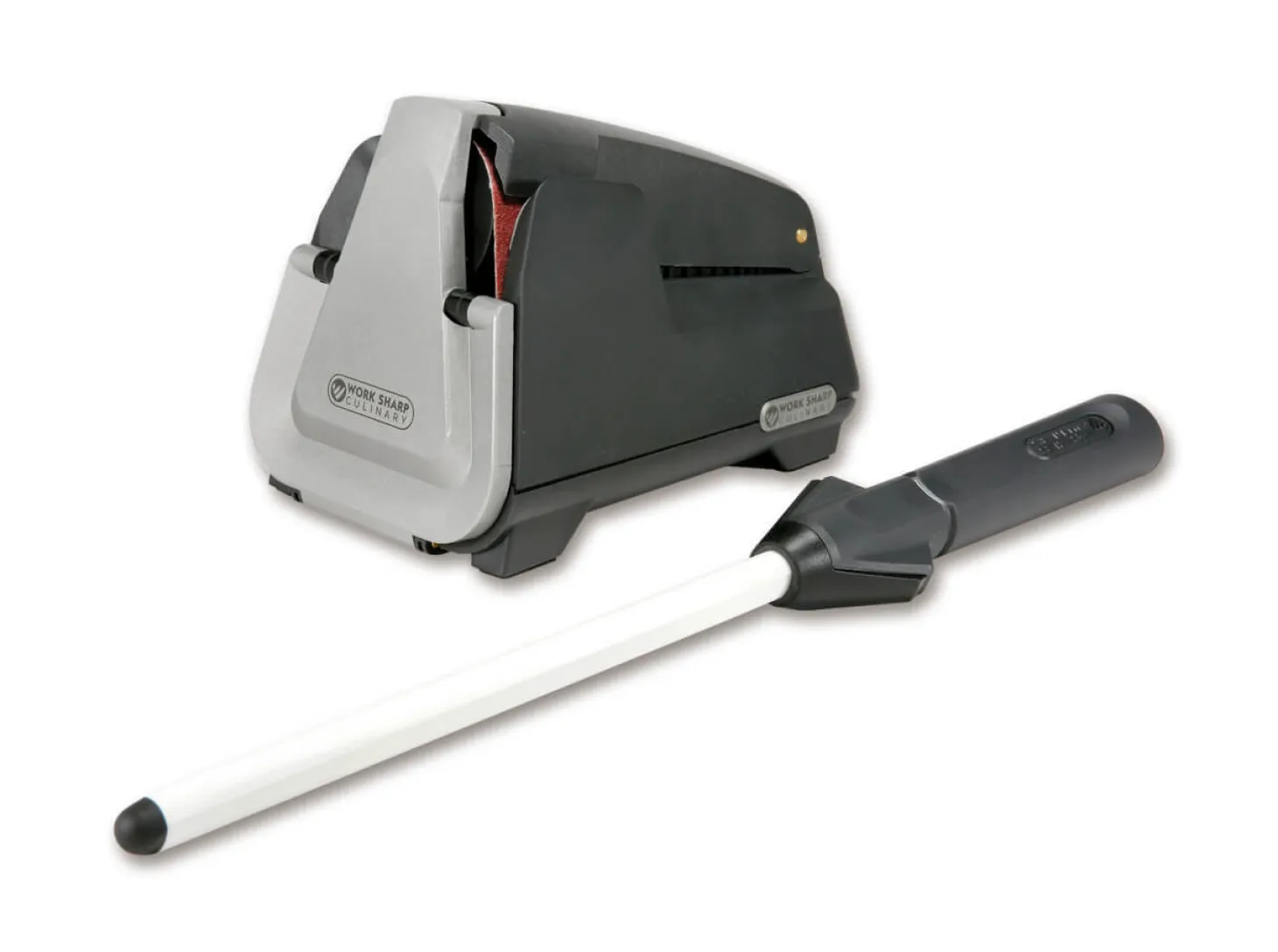Der Work Sharp Culinary E3 hebt das Schärfen von Küchenmessern auf ein neues Level. Die extrem einfache Handhabung wird nicht nur durch die Winkelführungen des Geräts gewährleistet, sondern auch durch die unterschiedlichen Geschwindigkeiten der integrierten Schleifbänder. Zudem sorgt die automatische und komplett wartungsfreie eingebaute Schleifstaubabsaugung und das leise Arbeitsgeräusch für ein sauberes und ruhiges Arbeiten, so dass der Küchentresen nicht zur Werkbank mutiert.Mit zwei verschiedenen Bandlaufgeschwindigkeiten zum Schärfen und für den Feinabzug und 17° Winkelführung bietet der Work Sharp Culinary E3 eine einfache Handhabung und hohe Effektivität. Die integrierte und wartungsfreie Schleifstaubabsaugung sorgt für eine saubere Arbeitsfläche. Der zusätzliche Ceramic-Schleifstab mit einer nutzbaren Länge von 20 Zentimetern weist eine grobe und eine feine Schleiffläche sowie einer Winkelführung auf und bietet die Möglichkeit des manuellen Auffrischens der Schärfe zwischendurch. 220V Netzanschluss. Lieferung mit zwei Schleifbändern (Medium/P120).