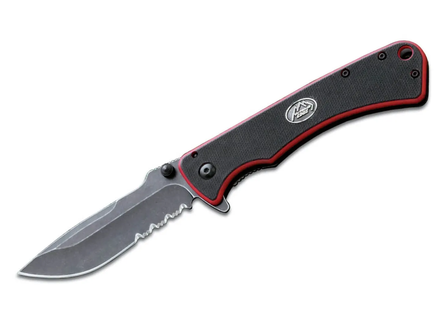 Das Outdoor Edge Divide ist mit einer kugelgelagerten Wellenschliff-Klinge aus 8Cr13MoV ausgestattet, die mit einer widerstandsfähigen Blackstone-Beschichtung versehen ist und per Flipper geöffnet wird. Die vordere Griffschale wird aus texturiertem G10 gefertigt, während die Rückseite aus titanbeschichtetem, rostfreiem 420 besteht und den stabilen Framelock beherbergt. Entworfen wurde das Messer von David Bloch und dem Messermacher Jerry Hossom. Mit Clip (Tip-up/r).