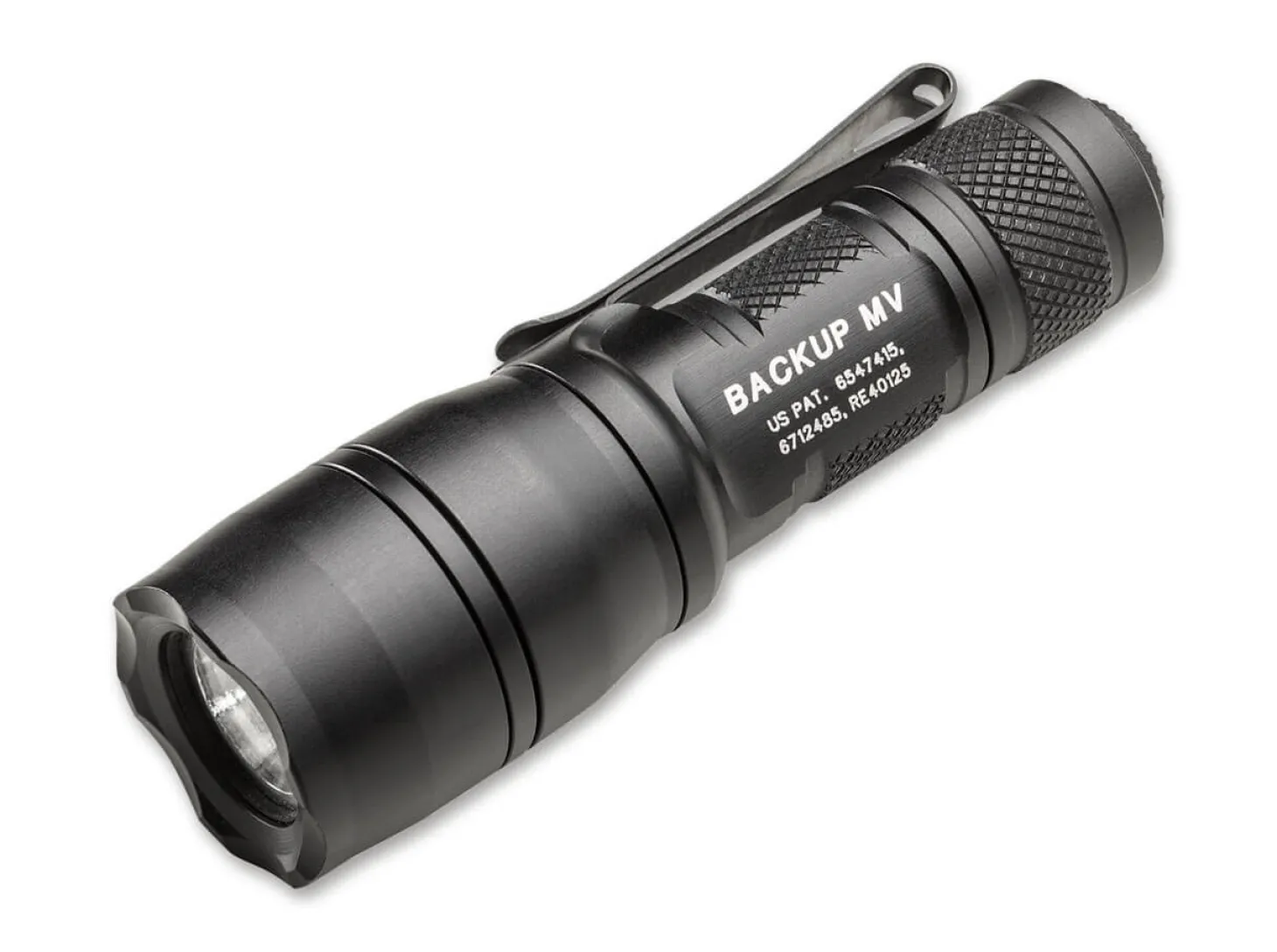 Die SureFire E1B wurde als handliche, leichte Backup-Taschenlampe für Einsatzkräfte entwickelt und kann entweder ca. 75 Minuten lang mit der Maximalleistung von 400 Lumen oder für bis zu 50 Stunden mit 5 Lumen betrieben werden. Die Reichweite der Backup-Lampe beträgt ca. 86 Meter. Über den taktischen Schalter am Ende des hochfesten Aluminiumgehäuses werden die verschiedenen Funktionen aktiviert. Das robuste Gehäuse ist mit einer texturierten Oberflächenstruktur versehen und ist wasserdicht nach IPX7. Mit O-Ring und Dichtung für wetterfesten Schutz. Die SureFire E1B Backup wird mit einer mitgelieferten CR123A Batterie betrieben. Mit Clip.