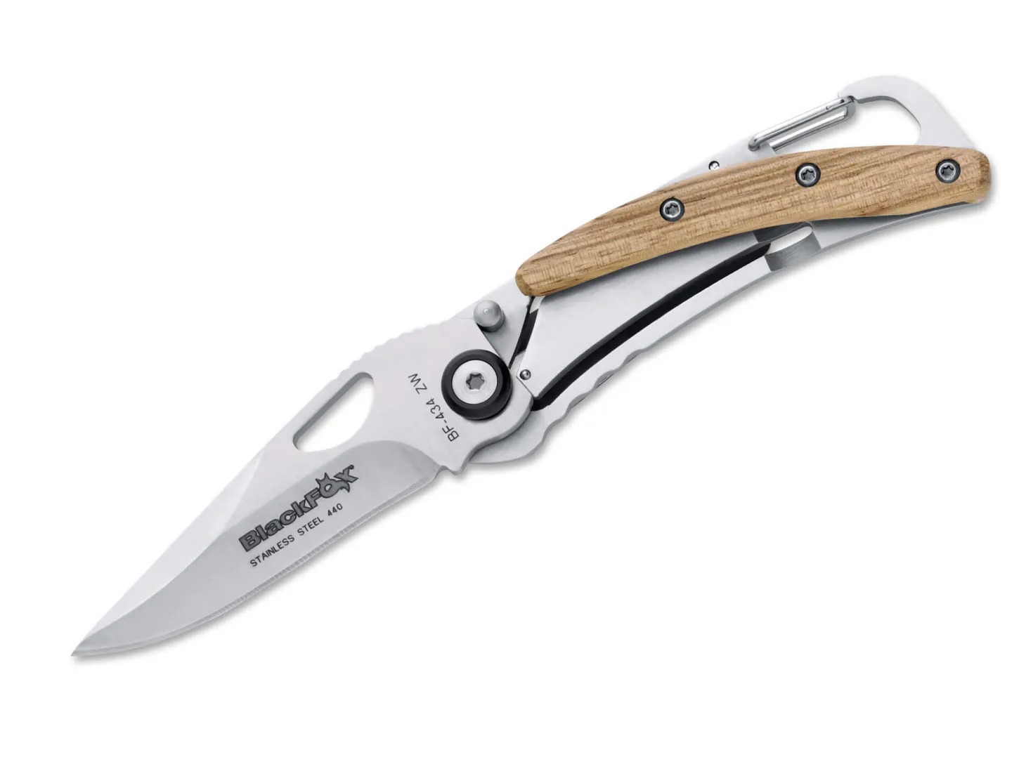 Das Taschenmesser 434 zählt durch seine Skelettbauweise ebenfalls zu den Leichtgewichten unter den Taschenmessern. Der große Clip auf der Rückseite ermöglicht nicht nur bequemes und zugriffsbereites Tragen, sondern auch die Verwendung als Geldscheinklammer. Alternativ kann das BF-434 auch mit dem integrierten Karabiner befestigt werden. Verriegelung per Linerlock. Der Klingenstahl 440A ist ebenso wie die Griffschalen satiniert.