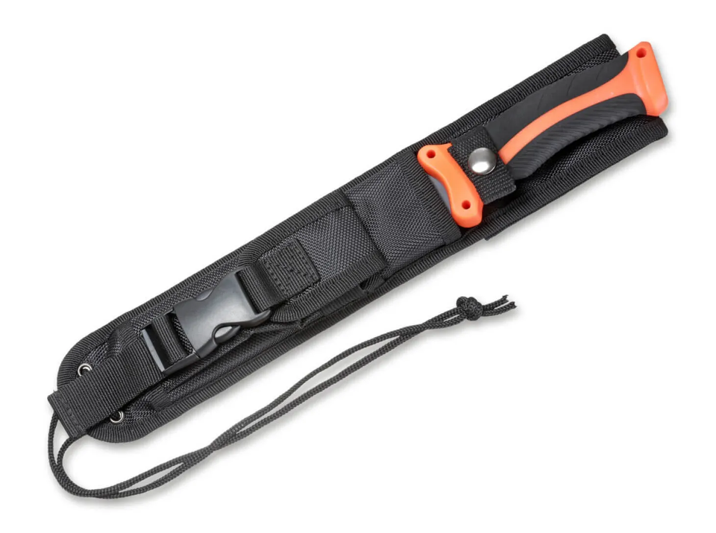 Als ausgewachsenes Buschmesser oder kleine Machete ist das Magnum FFB ein unverwüstliches Gebrauchsmesser, das kompromisslos auf Funktion und Praxistauglichkeit ausgelegt ist. Der orangefarbene Kunstoffgriff mit Gummieinlagen liegt auch bei Nässe stets sicher in der Hand, während die praktische Nylonscheide mit Durchschnitt- und Stichschutz mit einer Vortasche für weiteres Zubehör versehen ist. Die schwarz beschichtete Recurve-Klinge aus rostfreiem 440A Edelstahl ist sowohl für Schneid- als auch Hackaufgaben gleichermaßen geeignet.