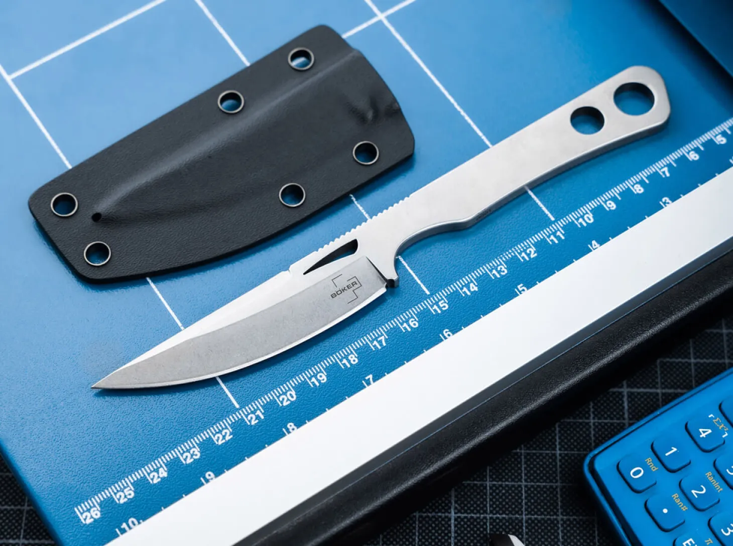 Puristisches Design und chirurgische Präzision als Ausdruck der „Haute Coutellerie“. Der französische Messermacher Charles de Buyer ist bekannt für seine Entwürfe, die auf das Wesentliche reduziert sind und gleichzeitig einen hohen Gebrauchswert versprechen. Das feststehende Messer ist als Ganzstahlkonstruktion konzipiert und weist spannende Details auf. Jimpings auf dem Rücken der schnitthaltigen D2 Klinge verbessern die Handhabung, während der Nagelhau und die ausgeprägte Fehlschärfe dekorative Akzente setzen. Der flache Griff des Gekai vermittelt ein angenehmes Gefühl in der Hand und verfügt über zwei große Aussparungen am Griffende, die Gewicht einsparen und als Fangriemenöse verwendet werden können. Lieferung mit passgenauer Kydexscheide und Gürteladapter.