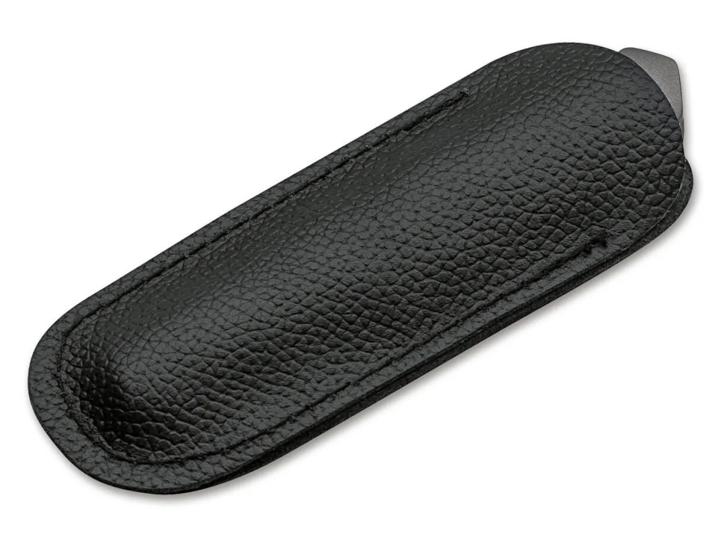 Das extrem schlanke Böker Plus Genios ist ein modernes Gentlemanmesser mit symmetrischer Linienführung. Die schmale Sheepfoot-Klinge aus VG-10 verfügt über einen balligen Klingenrücken und wird durch einen neuartigen, patentierten Backlock verriegelt, der auf einem platzsparenden Drahtbügel basiert. So wird keine zusätzliche Oberfeder mehr benötigt und der Klinge steht deutlich mehr Platz im Griff zur Verfügung. Der konturierte Griff aus Titan ist mit Einlagen aus Kohlefaser versehen und verzichtet auf einen Clip, wodurch das Gewicht des Taschenmessers weiter reduziert wird. Stattdessen wird das Genios mit einem schwarzen Stecketui aus Leder ausgeliefert. Mit hochwertigem Nylon-Etui zur Aufbewahrung.