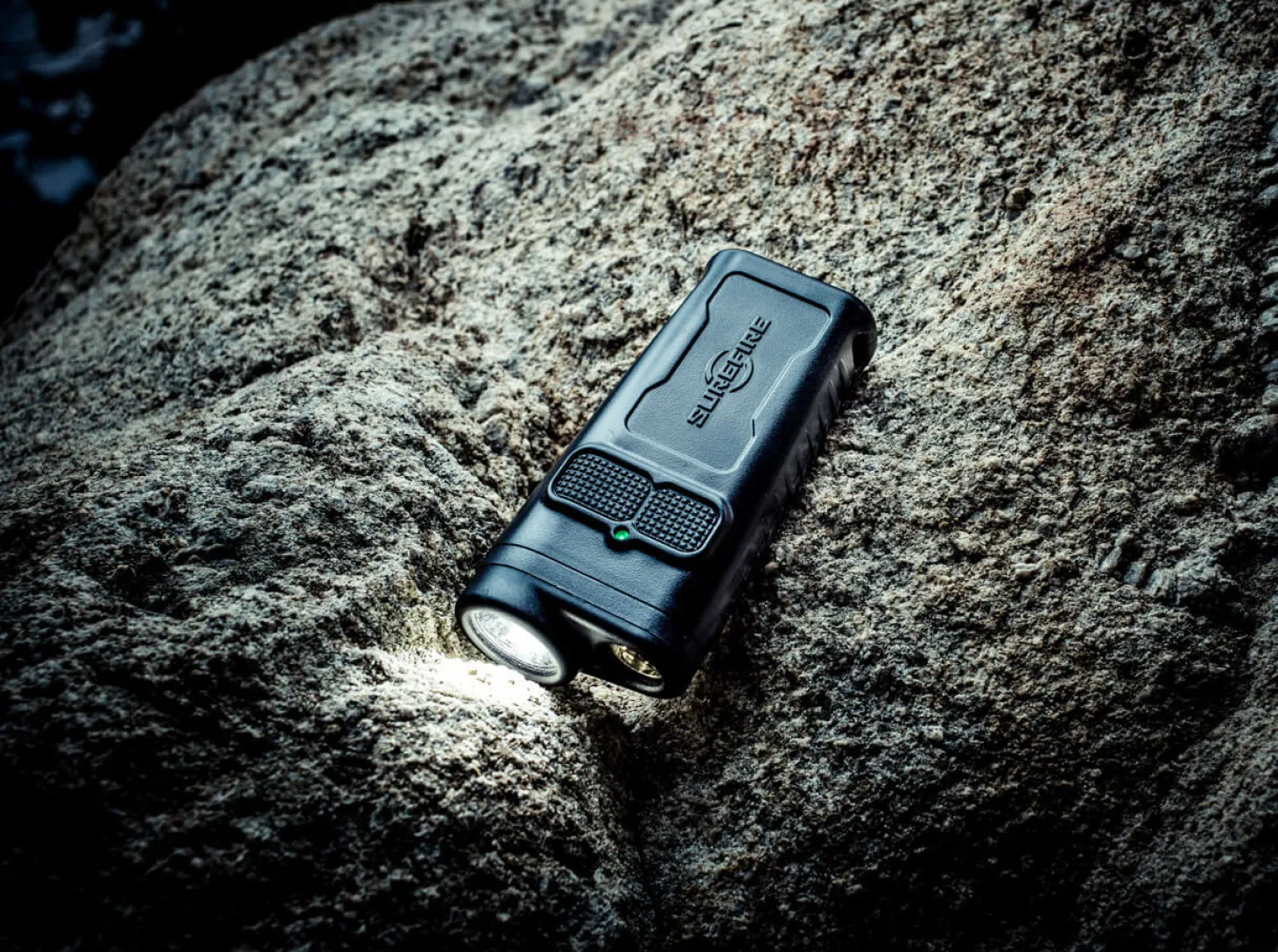 Die aufladbare SureFire Guardian wurde für die Wildnis entworfen und ist mit zwei separaten LED-Emittern ausgestattet, die ihre Lichtleistung mittels IntelliBeam-Technologie stufenlos an die Umgebungsbedingungen anpassen können. Während der leistungsstärkere Emitter eine maximale Lichtleistung von 1.000 Lumen für Flutlichtanwendungen im Nahbereich liefert, ist der zweite Emitter mit einer Maximalleistung von 800 Lumen für mittel- bis weitreichende Anwendungen gedacht und überzeugt mit einer maximalen Reichweite von 227 Metern. Mit fünf vorprogrammierten Profilen, die verschiedene Ausgabekonfigurationen einschließlich IntelliBeam-Modus bieten. Die SureFire Guardian wird mit einem integrierten Akku betrieben, der unkompliziert über einen abgedeckten USB-C-Anschluss aufgeladen werden kann und sich zusätzlich als USB-Stromquelle eignet. Mit praktischem Lanyard.