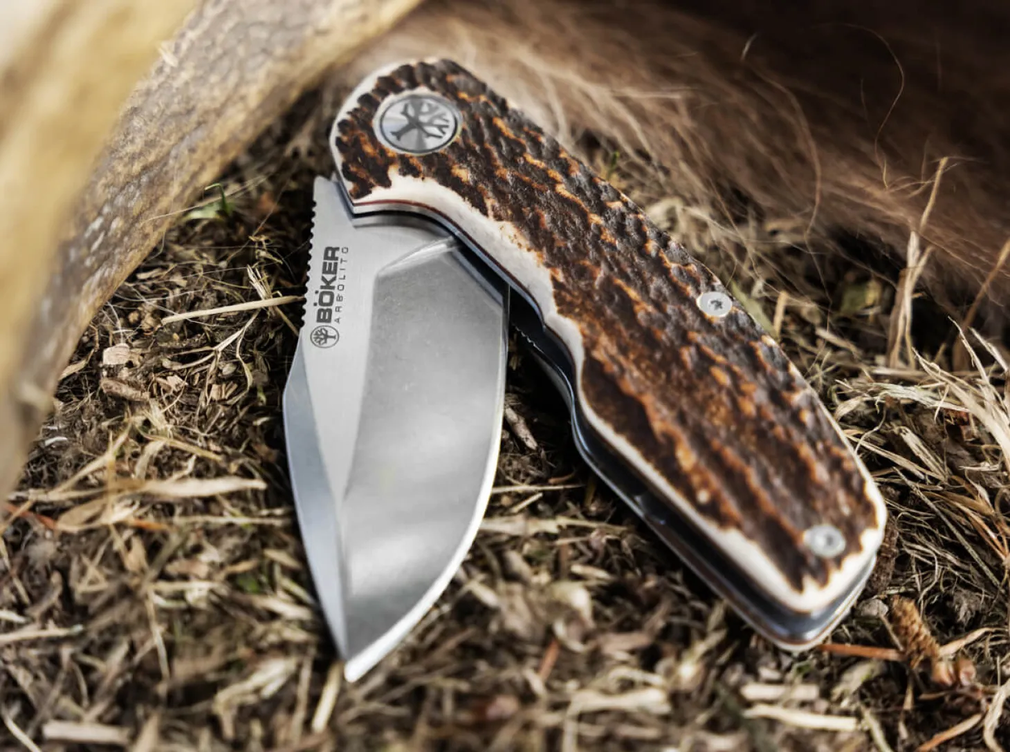 Die Mission: den stressigen Alltag mit verdienter Auszeit verfeinern. Die Anforderung: Charakter! Eine heldenhafte Aufgabe, derer sich das Böker Arbolito Heroína (span. Heldin) unerschrocken annimmt und als vielseitiges Taschenmesser die Bereiche EDC, Natur und Jagd heroisch in Einklang bringt. Die imposante Klinge aus schnitthaltigem 14C28N öffnet geschmeidig weich per Flipper und wird durch den felsenfesten Liner-Lock arretiert. Für den traditionellen Moment sorgen die Griffschalen aus ausgesuchtem Hirschhorn, während sich die opulente Abdeckung der Klingenachsschraube mit dem weltbekannten Böker Baum harmonisch ins Gesamtbild einfügt. Mit Tip-Up Clip (r), der eine Deep-Carry-Trageweise erlaubt.