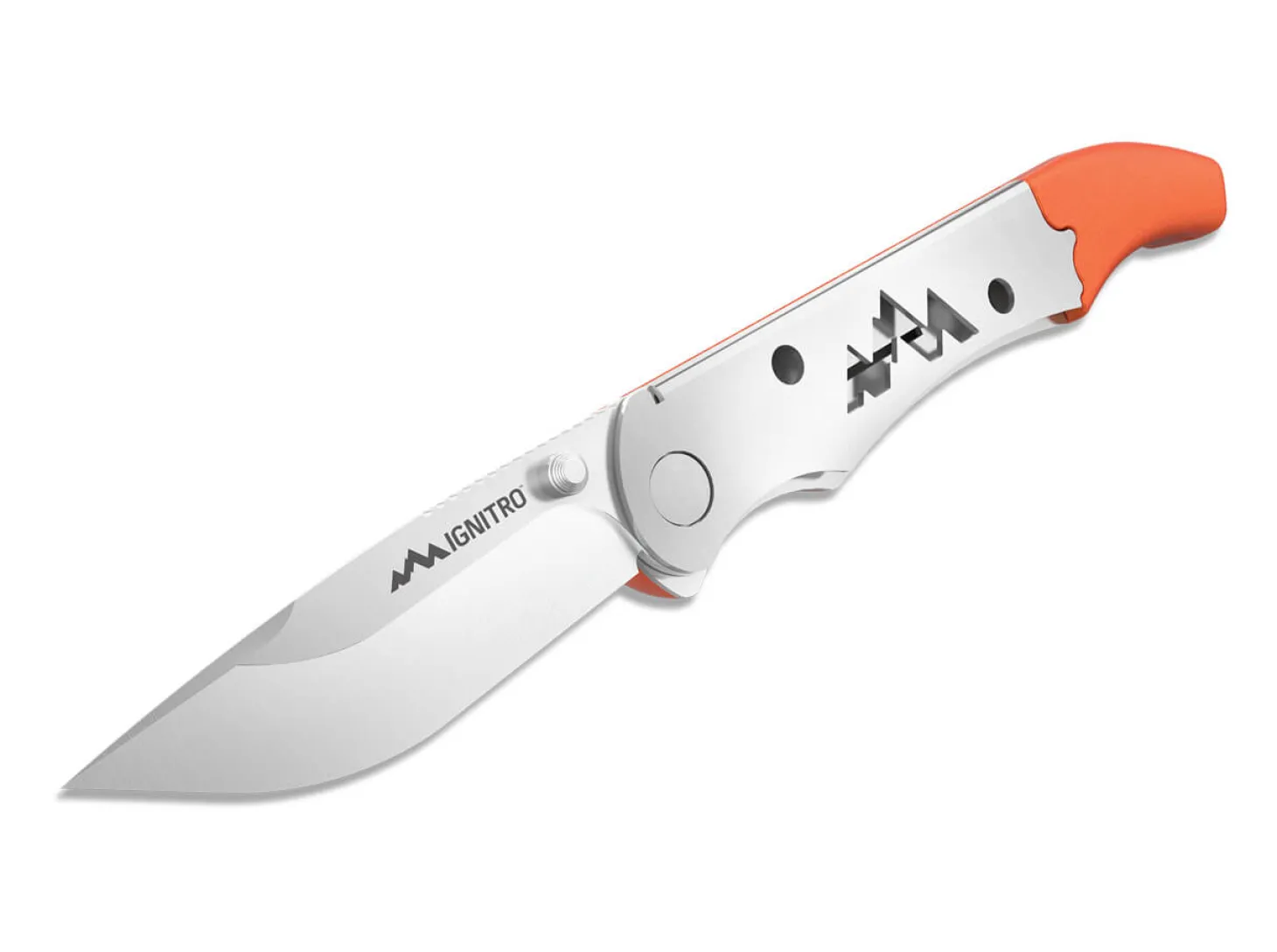 Das Ignitro von Outdoor Edge ist ein praktisches Überlebensmesser mit signalfarbenem ABS-Griff. Dieser hohle Griff beherbergt eine Signalpfeife sowie einen Feuerstarter. Ein spezielles Staufach ist mit Zunder bestückt, um in Notsituationen ein Feuer entfachen zu können. Die Klinge verriegelt per Linerlock.