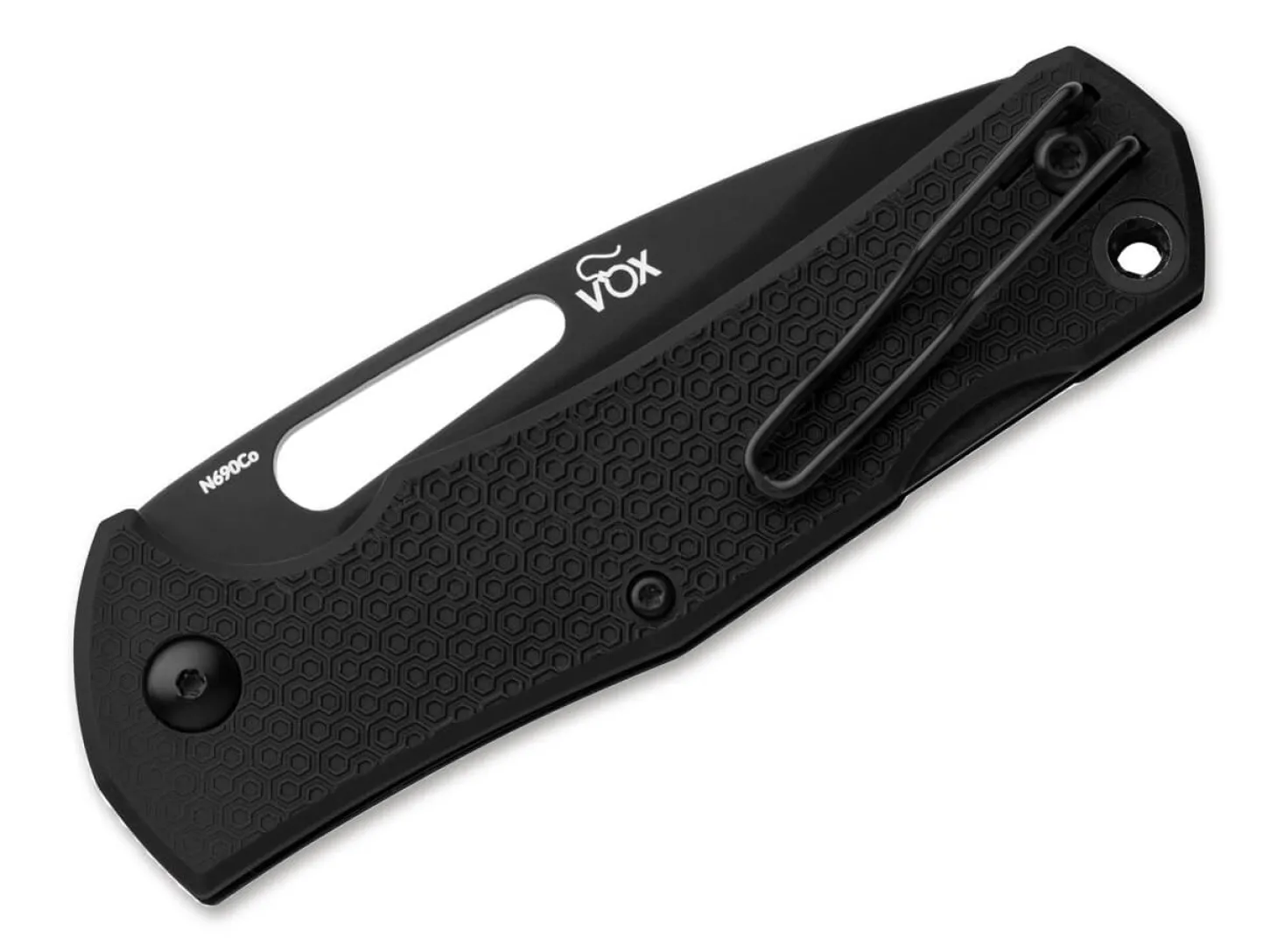 Mit viel Liebe zum Detail hat Jesper Voxnaes das komplett schwarze MKM Lov konzipiert und setzt dabei auf eine schnitthaltige N690 Klinge mit großer Daumenöffnung und Back Lock Verriegelung. Der ergonomische Griff aus FRN weist eine feine Textur auf und sorgt damit jederzeit für sicheren Halt. Der umsetzbare Drahtclip (Tip-Up) und die Fangriemenöse erhöhen den Tragekomfort und die Alltagstauglichkeit. Die Blau anodisierte Klingenachsschraube setzt einen dekorativen Akzent.
