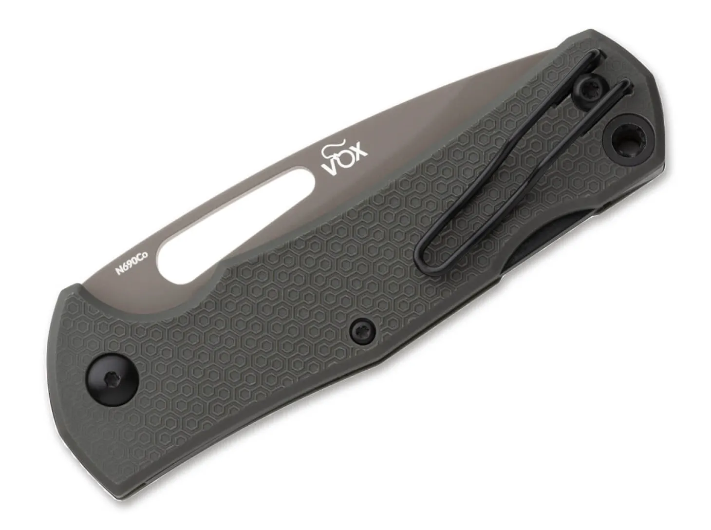 Mit viel Liebe zum Detail hat Jesper Voxnaes das MKM Lov konzipiert und setzt dabei auf eine schnitthaltige N690 Klinge mit großer Daumenöffnung und Back Lock Verriegelung. Der ergonomische Griff aus olivgrünem FRN weist eine feine Textur auf und sorgt damit jederzeit für sicheren Halt. Der umsetzbare Drahtclip (Tip-Up) und die Fangriemenöse erhöhen den Tragekomfort und die Alltagstauglichkeit. Die Orange anodisierte Klingenachsschraube setzt einen dekorativen Akzent.