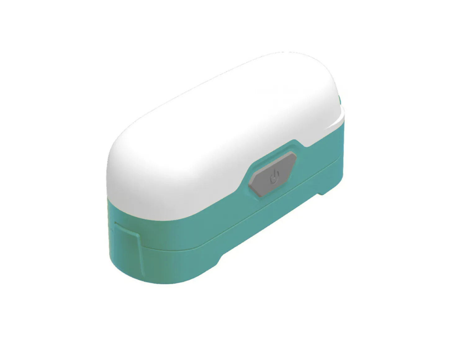 Campingleuchte mit Rundumabstrahlung, Weißlich und Rotlicht. Magnetsockel und Lasche zum Aufhängen.