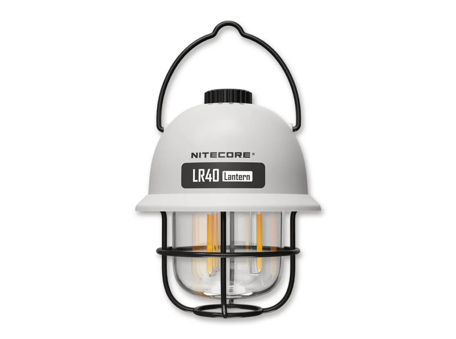 Die Campinglaterne im Retro-Style hat es in sich. Denn der interne 4000 mAh Akku sorgt für eine lange Leuchtdauer von bis zu 65 Stunden und dient gleichzeitig als Energielieferant, um Smartphone & Co. mit Strom zu versorgen. Das Lichtspektrum reicht von Weiß bis Warm-Weiß und kann stufenlos eingestellt werden. Geladen wird die Lampe über den USB-C Port, während der USB-A Anschluss für die Powerbank Funktion dient. Der Korpus der Lampe besteht aus weißem, widerstandsfähigem Polycarbonat und die schwarzen Bügel aus Metall. So kann die Campingleuchte nicht nur hingehangen, sondern auch hingestellt werden. Ein rotes SOS Warnlicht ist zusätzlich zuschaltbar. Lieferung mit USB-C Kabel und Anleitung.Die maximale Helligkeit der Nitecore LR40 beträgt 100 Lumen.Leistung und Brenndauer (Warm-Weiss)Min (15 Lumen) für ca. 45 StundenMax (80 Lumen) für ca. 15 StundenLeistung und Brenndauer (Weiss)Min (15 Lumen) für ca. 38 StundenMax (50 Lumen) für ca. 10 StundenLeistung und Brenndauer (MIX)Min (10 Lumen) für ca. 65 StundenMax (100 Lumen) für ca. 8 Stunden