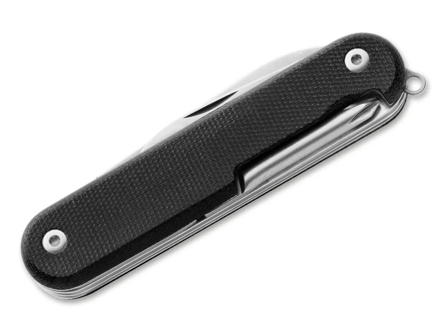 Das moderne Slipjoint Messer ist mit fünf Werkzeugen für die meisten Situationen des Alltags gewappnet. Die Hauptklinge aus hochwertigem MagnaCut öffnet per Nagelhau und wird von einer Entourage aus Kreuzschlitz-Schraubendreher, Wellenschliffklinge, Säge und Schere begleitet. Der rutschfeste Griff ist mit schwarzen Micarta Schalen ausgestattet und verfügt über eine diskrete Fangriemenöse. Dank seiner Vielseitigkeit darf das MKM Malga 5 in keiner Ausrüstung fehlen.