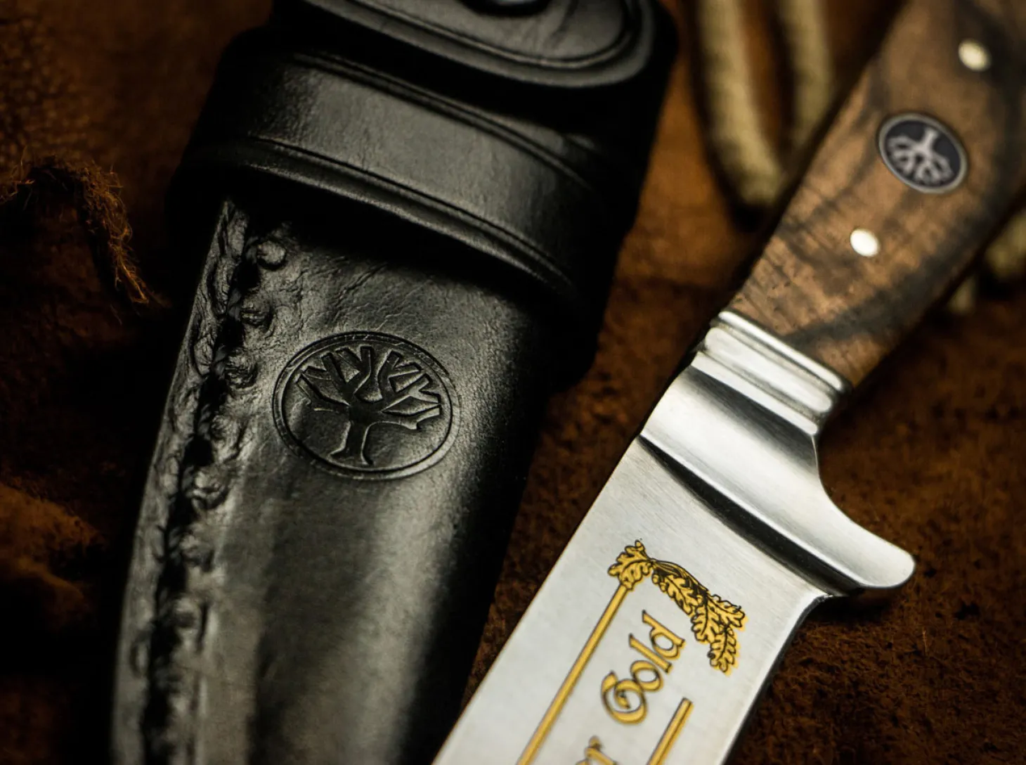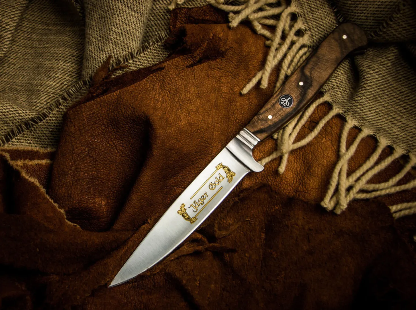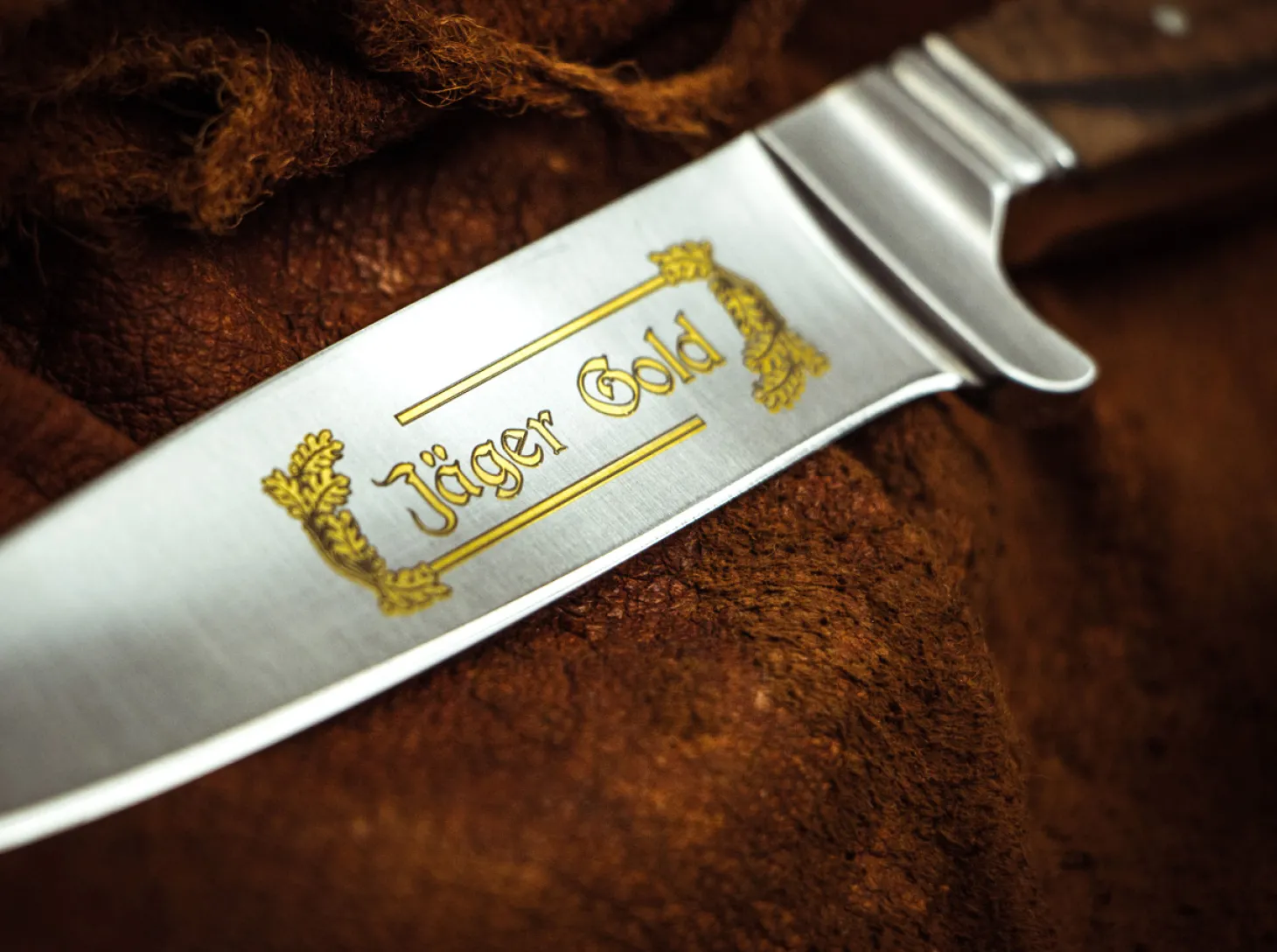 Die Jagd und die Hege des Wildes ist nach wie vor ein wichtiger Bestandteil unseres kulturellen Erbes. Und sie hat auch in der heutigen Zeit, die zunehmend von ökologischen Gesichtspunkten geprägt ist, einen hohen Stellenwert in unserer Gesellschaft. Mit unserer Jäger Gold Serie möchten wir uns zu diesem Erbe bekennen und allen Jägern, die ihren Teil dazu beitragen und sich um den Erhalt unserer Natur verdient machen, unsere Anerkennung aussprechen.Die echte Goldätzung der Klingen war in den goldenen Zeiten der Solinger Messerindustrie bei hochwertigen Produkten üblich. Mit diesen edlen Eichenlaubranken in Gold unterstreichen wir den exklusiven Anspruch und halten solch klassischen Herstellungstechniken, die heute im Aussterben begriffen sind, die Treue. Das edle heimische Walnuss-Wurzelholz der Beschalung und die gepließteten Klingen strahlen eine zeitlose Eleganz aus.Als klassischer Nicker findet dieses Messer zwar vor allem unter den traditionsbewussten Jägern seine Freunde, hat sich jedoch zu Recht seit vielen Jahren auch als praktisches und handliches Outdoor- und Vespermesser bewährt. Geschmiedet aus dem klassischen Solinger Klingenstahl 4116, gibt sich der Nicker hinsichtlich Schärfe und Schnitthaltigkeit keine Blöße. Die variable Lederscheide, die am Gürtel oder in der Nickertasche der Lederhose getragen werden kann, macht den Nicker zum echten Klassiker.