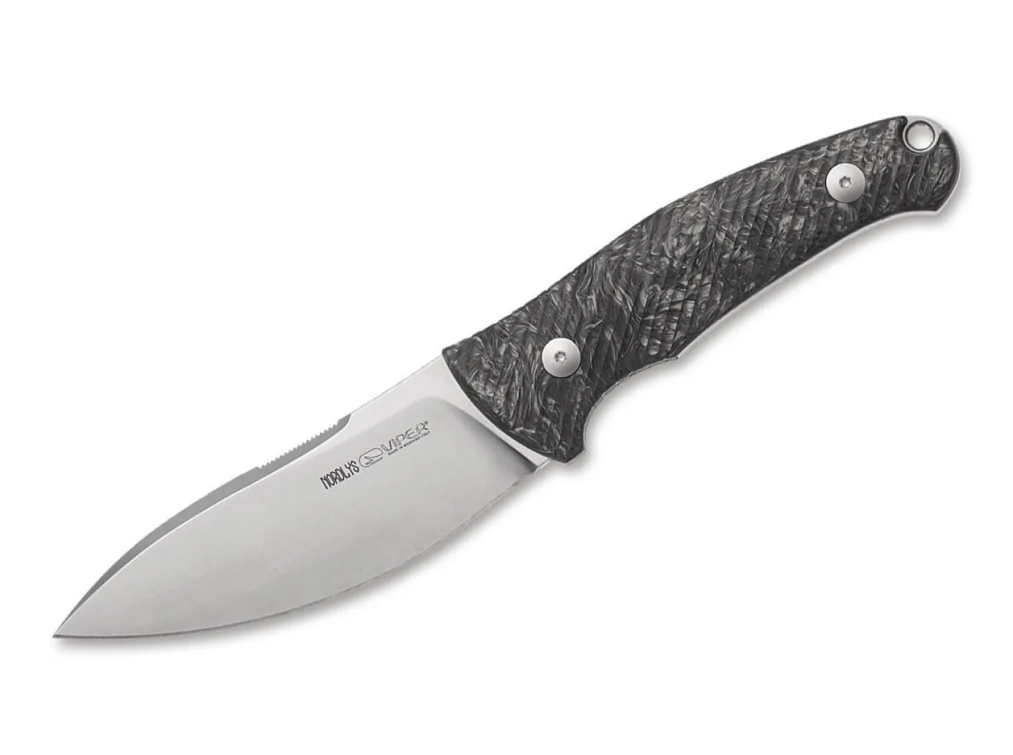Standesgemäß wurde das schillernde Viper Nordlys von einem waschechtem Nordlicht entworfen. Kein Geringerer als der dänische Designer Jens Anso stand Pate für das feststehende Messer mit wuchtiger Klinge aus N690 und Vollerl. Seine Leuchterscheinung kommt vor allem in den Bereichen Outdoor, Survival und Bushcraftig zur Geltung. Texturierte Griffschalen aus Carbon sowie Jimpings an der Daumenauflage sorgen für eine sichere Anwendung unter selbst schwierigsten Bedingungen. Mit Fangriemenöse und hochwertiger Lederscheide.