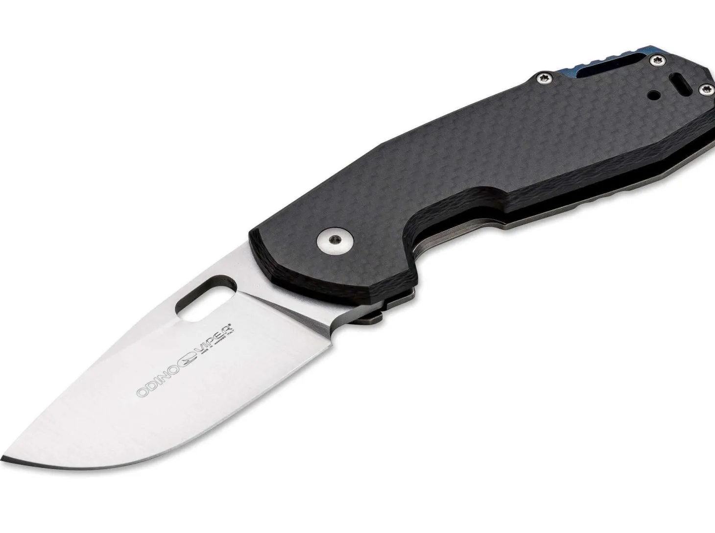 Odino als Name verweist auf Odin, den höchsten der nordischen Götter, und dadurch auch auf den Ursprung des Designs, das von Jesper Voxnæs aus Dänemark stammt, dessen Handschrift hier auch leicht zu erkennen ist. Die breite, fast komplett flachgeschliffene Klinge vereint Stabilität und Nutzwert, und der Griff des Titan-Framelocks liegt ausgezeichnet in der Hand. Die tiefe Zeigefingermulde bietet ein hohes Maß an Griffsicherheit. Bei der Jagd, Outdoor, im Alltag oder beim Vesper ist das Odino für jede Aufgabe zu haben. Die markante Fangriemenöse, die in den Titan-Spacer integriert ist, und der umsetzbare Clip vervollständigen die gehobene Ausstattung. Klingenstahl N690. Titan-Framelock mit Vorderschale aus Carbon. Klinge mit Satin-Finish.