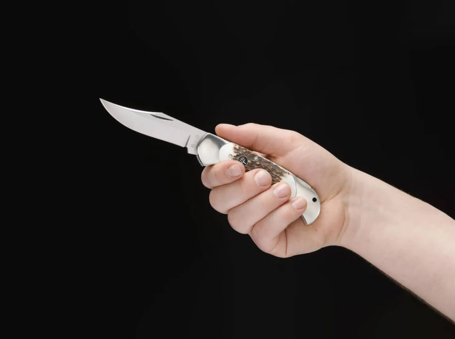 Das Böker Optima ist ein Taschenmesser zum Zupacken und Strapazieren. Die außergewöhnlich starke Klinge aus 440C ist rostfrei, hohlgeschliffen und durch den Backlock sicher feststellbar. Die Klingen der Optima-Serie sind grundsätzlich austauschbar, sodass das Messer schnell den jeweiligen Anforderungen angepasst werden kann. Das Wechselsystem verwandelt das einteilige Messer in ein praktisches Multifunktionswerkzeug. Der Griffkörper wird aus einem Stück Neusilber gesintert, die Schalen bestehen aus traditionellem Hirschhorn.