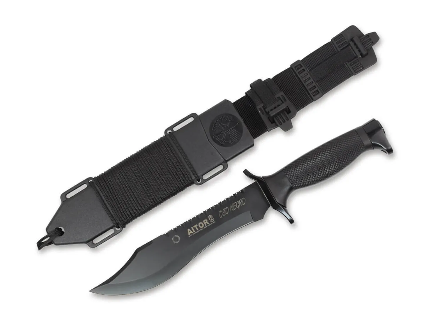 Das legendäre Black Bear Messer (span. oso negro) aus der Bear Reihe wurde für die Spezialeinheiten der spanischen Armee entwickelt und gilt unter vielen Experten als das vielseitigste Messer im Hinblick auf Ausstattung, Balance, Handhabung und Schärfe. Mit einer Härte von 55-58 HRC ist die robuste Klinge aus MoVa jeder Aufgabe gewachsen. Der markante Sägerücken sorgt für die nötige Flexibilität, während der leichte Griff aus Polyamid mit den Messingelementen an Knauf und Handschutz jederzeit sicheren Halt versprechen. Das komplett schwarze Outdoor-Messer wird mit einer passgenauen Kunststoffscheide ausgeliefert.