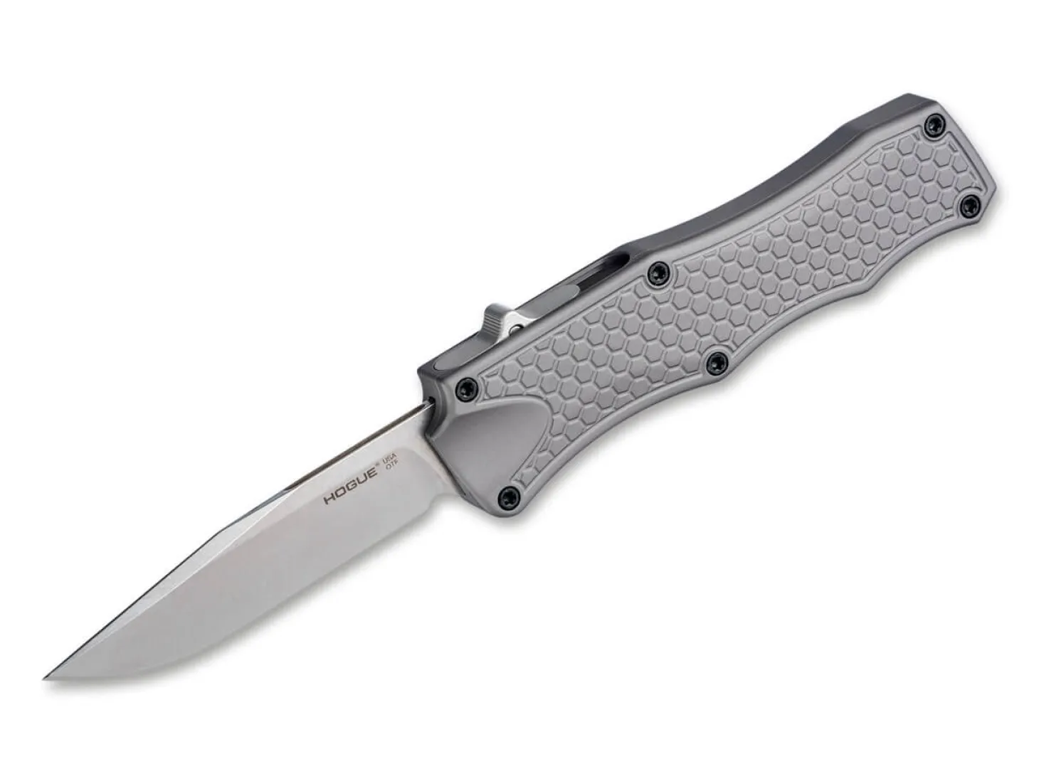 Achtung!Dieser Artikel ist ausschließlich für den Export in zugelassene Märkte bestimmt. Es handelt sich um einen verbotenen Gegenstand gemäß deutschem Waffengesetz. Der Vertrieb in und die Einfuhr nach Deutschland sowie jeglicher Umgang mit diesem Produkt in Deutschland ist verboten. Die Abgabe erfolgt nur an berechtigte Personen, jede Bestellung wird manuell geprüft! Bestellungen aus nicht zugelassenen Märkten werden ohne Rückmeldung gelöscht. Aufgrund der besonderen Rechtslage müssen wir diesen Artikel getrennt von anderen Artikeln versenden, wodurch höhere Portokosten entstehen können. Das Hogue OTF verfügt über eine Tanto-Klinge aus dem pulvermetallurgischen Hochleistungsstahl CPM-154, die sich automatisch aus dem Griff schiebt. Diese hochpräzise Mechanik zeichnet sich durch Belastbarkeit und Zuverlässigkeit aus. Das strukturierte graue Aluminiumgehäuse liegt sicher in der Hand.