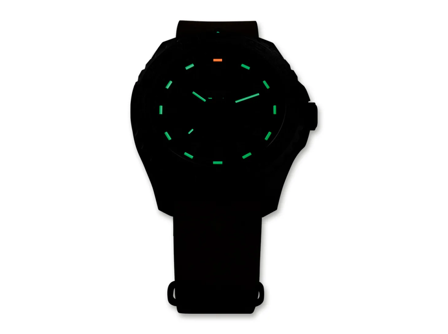 Die Traser P96 OdP Evolution ist der ideale Zeitmesser für Entdecker und Outdoor-Enthusiasten, der bei keinem Abenteuer fehlen darf. Extrem leicht, zäh und robust – diese Eigenschaften charakterisieren die sportliche P96 Outdoor Pioneer am besten. Zusätzliche Robustheit verleiht der P96 ein widerstandsfähiges glasfaserverstärktes Polymer-Gehäuse. Die Ablesbarkeit bei Nacht ist durch die hauseigene Selbstleuchttechnologie trigalight jederzeit gewährleistet.Die Uhr hat einen Durchmesser von 44 Millimetern und ist mit anti-reflektierendem, kratzfestem Saphirglas und einem Original Swiss Made Quarz Uhrwerk ausgestattet. Die grünen Ziffern und Uhrzeiger sitzen auf einem grauen Ziffernblatt. Das hochwertige Leder-Armband ist angenehm zu tragen. Die Uhr verfügt über eine Stoppfunktion und ist wasserdicht bis 20 bar oder 200 Meter. Die trigalight Selbstleuchttechnologie erleuchtet Index 1 bis 11 in grüner Farbe und Index 12 in orangener Farbe. Zusätzlich ist die einseitig drehbare Lünette mit Super-LumiNova beschichtet.
