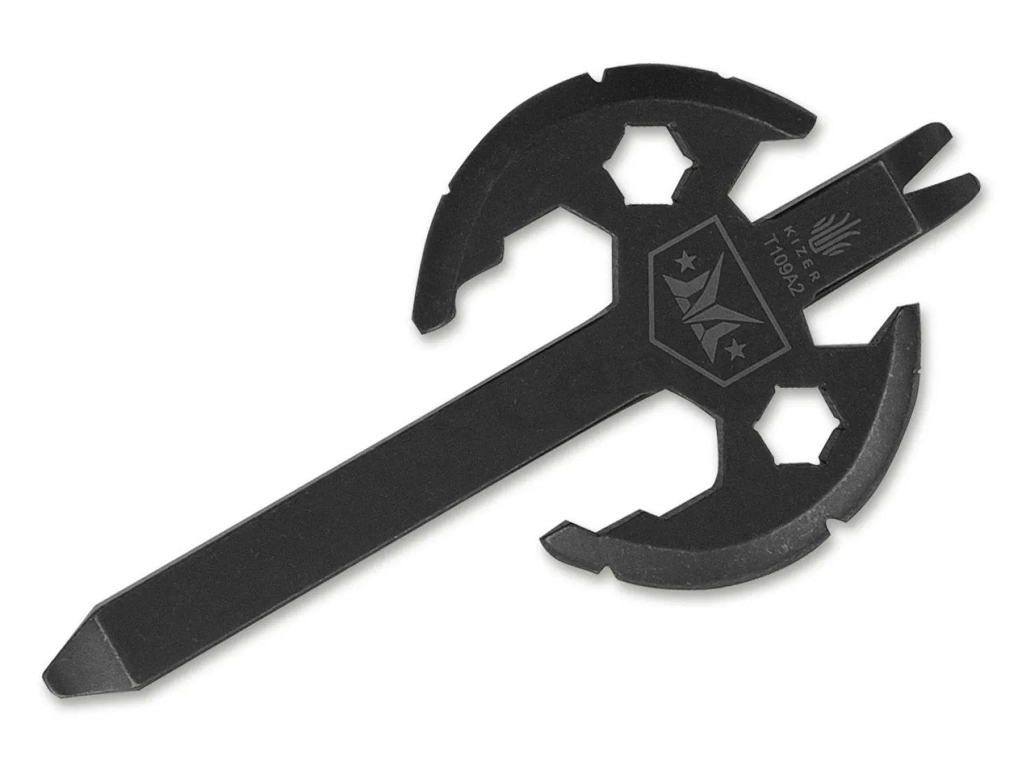 Die wie eine mittelalterliche Streitaxt geformte Pry-Axe von Kizer ist mehr als nur ein Blickfang. Das handliche Tool für den Schlüsselbund verfügt über einen Flaschenöffner, zwei Inbusschlüssel, ein Mini-Stemmeisen und einen Flachkopfschraubendreher. Gefertigt wird die Kizer Pry-Axe aus Titan.