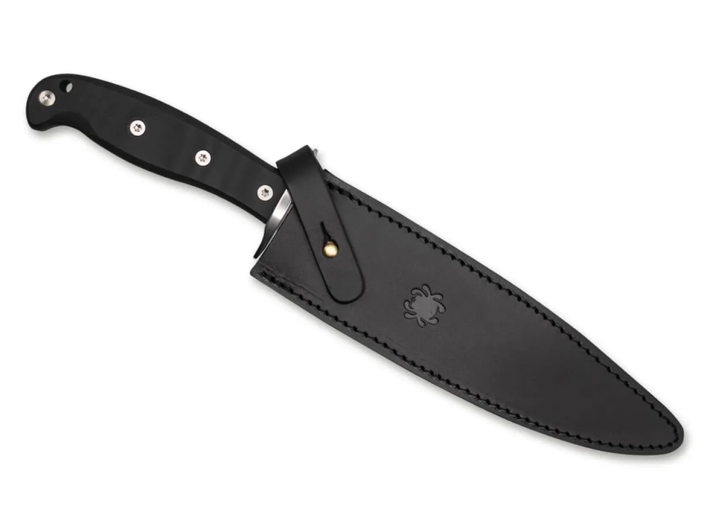 Das beeindruckende Respect ist die persönliche Interpretation des ur-amerikanischen Bowiemessers von Sal Glasser, dem Gründer von Spyderco. Es macht seinem Namen alle Ehre, denn jedes der 354 Gramm, die das Messer auf die Waage bringt, nötigt einem Respekt ab. Die wuchtige, 6 Millimeter starke Klinge aus dem pulvermetallurgischen CPM-154 ist für eine perfekte Schneidgeometrie flach geschliffen. Eine „Old-School“-Parierstange und nahtlos um die Angel gebaute G10-Schalen runden die beeindruckende Gesamterscheinung ab. Das Respect wird mit einer handgemachten Lederscheide geliefert.