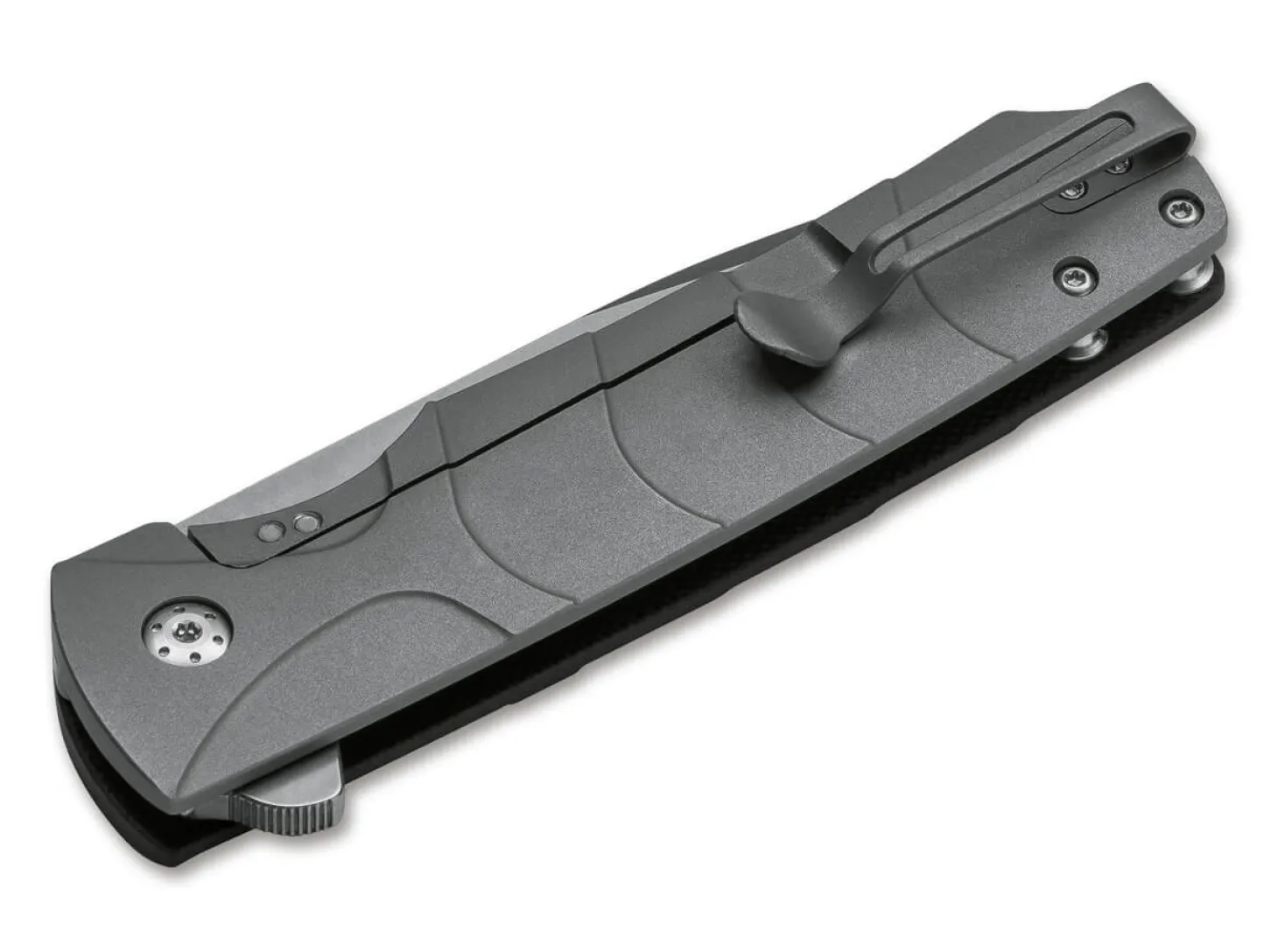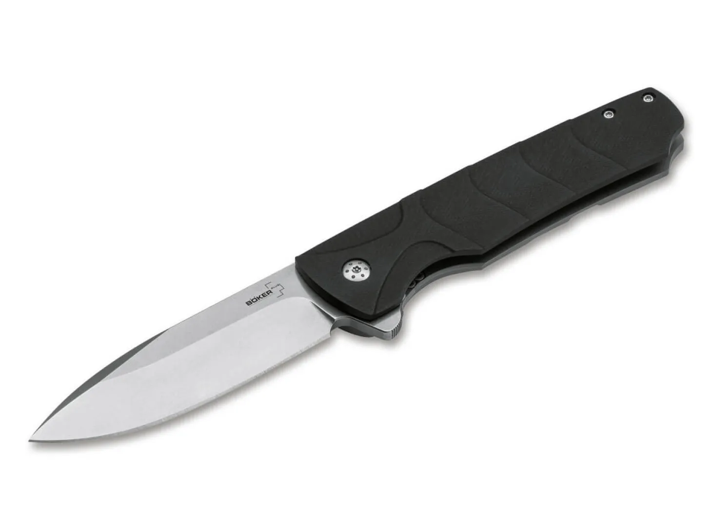 Das Böker Plus Ridge vereint eine geradlinige Bauweise mit einer klassischen Spearpointklinge, die kräftig dimensioniert ist. Die Materialstärke zieht sich bis kurz vor die Klingenspitze und verleiht dem Messer so deutliche Stabilität. Die gefräste Struktur der Oberfläche findet sich nicht nur auf der Vorderschale aus G10, sondern auch auf der ebenfalls konturierten Griffrückseite, die in ihrer Edelstahlschale auch die Framelock-Verriegelung beherbergt. Zusammen mit D2 als Klingenstahl ist eine hohe Robustheit gewährleistet. Die Klinge ist kugelgelagert und öffnet per Flipper. Mit abnehmbarem Clip (Tip-up/r).