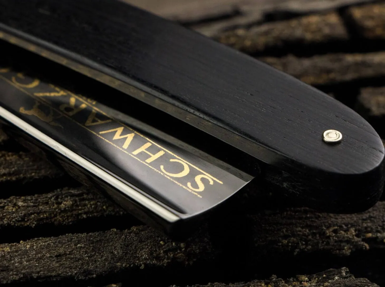 Mit unserem eleganten Rasiermesser Schwarzgold mit schwarzer Ruthenium-Beschichtung auf dem Untergrund einer vollständigen 24-karätigen Vergoldung möchten wir an die außergewöhnliche Rennstute Schwarzgold erinnern.Schwarzgold erblickte im Jahre 1937 auf dem Gestüt Schlenderhahn als Tochter des Deckhengstes Alchimist und der Zuchtstute Schwarzliesel die Welt. Schwarzgold war in jeder Hinsicht ein Ausnahmepferd. Von ihren zeitgenössischen Sportliebhabern wurde das Englische Vollblut als Galoppmaschine, Wunderstute und Überpferd bezeichnet. Den Preis der Diana gewann sie 1940 mit 6 Längen, das deutsche Derby im selben Jahr sogar mit sagenhaften 10 Längen Vorsprung. Das klassische Kissaszony-Rennen wurde im Folgejahr nach ihr benannt.Trotz dieser souveränen und ungekannten Überlegenheit geht man davon aus, dass Schwarzgold niemals voll ausgeritten wurde, also tatsächlich immer unter ihren tatsächlichen Möglichkeiten galoppierte. Der Grund hierfür und ein weiteres Faszinosum, das die Legende begründete, war der schwierige Charakter der Stute. Ihr Trainer Georg Arnull verbot jeglichen sonst üblichen Einsatz der Peitsche beim Training sowie beim Rennen. Alles, was Schwarzgold lief, tat sie also freiwillig. Hinzu kam, dass Schwarzgold nur auf Sand eingesetzt werden konnte, da Sie auf Rasen unmöglich zu kontrollieren war.Über allen Siegen von Schwarzgold schwebte der Schatten des NS-Regimes. Waldemar von Oppenheim, der Besitzer des Gestütes Schlenderhahn und damit der Besitzer von Schwarzgold wurde kurz nach den Siegen zwangsenteignet. Eine internationale Karriere von Schwarzgold war damit vereitelt. Als Zuchtstute brachte Schwarzgold zwei Fohlen zur Welt. Eines dieser beiden Fohlen – Schwarzblaurot – setzte die Schwarzgold-Linie fort, in der sich bis heute noch zahlreiche Siegerpferde finden.Um der Eleganz und Souveränität der Stute in dem ihr gewidmeten Messer kompromisslos gerecht zu werden, mussten wir uns einiges überlegen. Schließlich kamen wir zu der Lösung, die extrahohl und mit Wall geschliffene Klinge im ersten Schritt vollständig mit 24-karätigem Gold zu beschichten. Nur auf diesem Untergrund haftet die im Negativ-Verfahren aufgetragene Ruthenium-Beschichtung optimal und erhält ihren unvergleichlichen anthrazitfarbenen und dabei seidigen Glanz.Ruthenium ist ein chemisches Element mit dem Elementsymbol Ru und der Ordnungszahl 44. Es ist ein ausgesprochen hartes Platinmetall, das nur in sehr geringem Maße verwendet wird. Es kongruiert daher mit dem Ausnahmecharakter der Namensgeberin des Rasiermessers. Ebenso konsequent edel ist das verwendete Griffmaterial. Das ausgesuchte und sprichwörtlich schwarze Holz nimmt die reizvolle Farbkombination der Klinge auf und ist der herausragenden Qualität des gesamten Messers würdig. Entgegen der Katalogangabe handelt es sich dabei um heimisches Mooreichenholz. Inklusive Echtheitszertifikat und Präsentationsdisplay.
