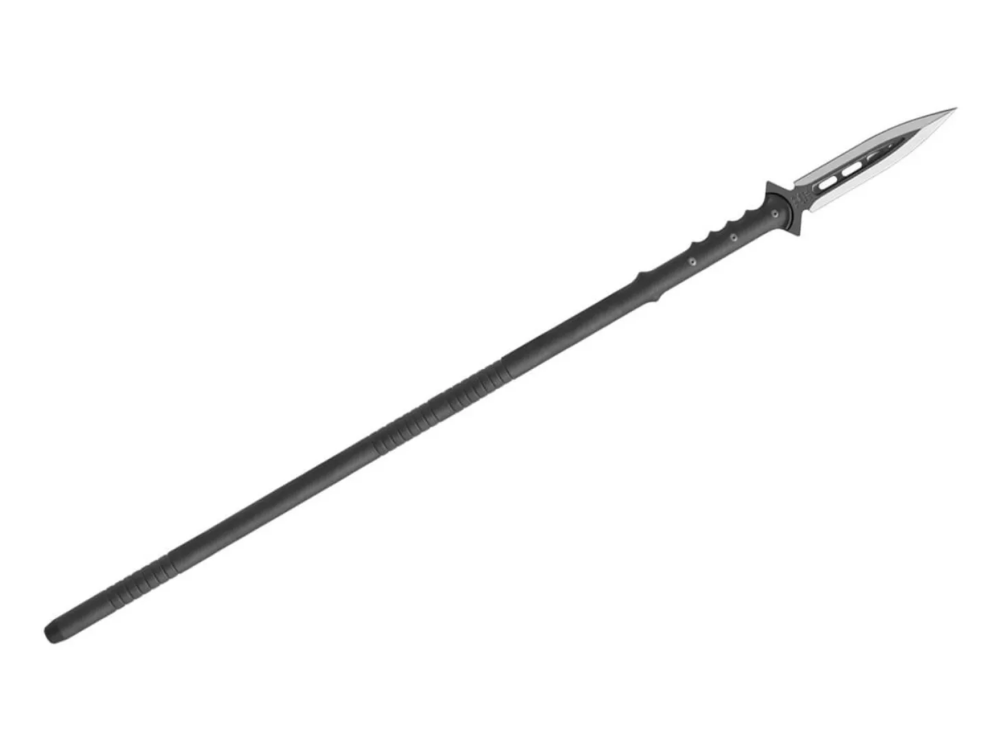 Der 112 cm lange Survival Spear von United Cutlery besitzt eine 20 cm lange, scharf geschliffene Edelstahlklinge bzw. Speerspitze, die unglaublich stabil und widerstandsfähig konstruiert ist. Die Klinge aus 2Cr13 Stahl ist mit dem glasfaserverstärkten Griff sicher durch drei Schrauben verbunden. Der Survival-Speer eignet sich zum Stoßen, Hebeln, Werfen sowie zum Aufbrechen von Kisten oder leichten Türen. Auslieferung mit Klingenschutz aus Gummi.Dieser Artikel wird als Sperrgut verschickt.