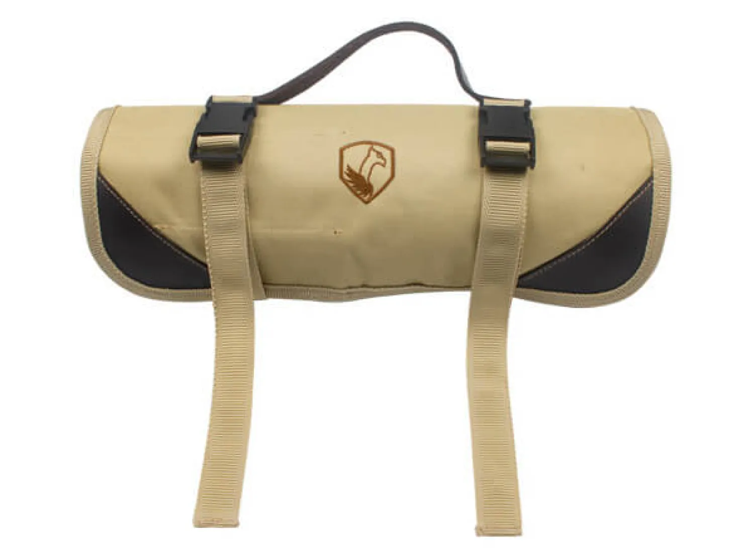Die Condor Aufbewahrungs- und Tragetasche zum Aufrollen ist aus beigem Canvas gefertigt. In ihr finden bis zu 10 Messer in vorgefertigten Lederlaschen Platz. Mit praktischem Tragegriff.