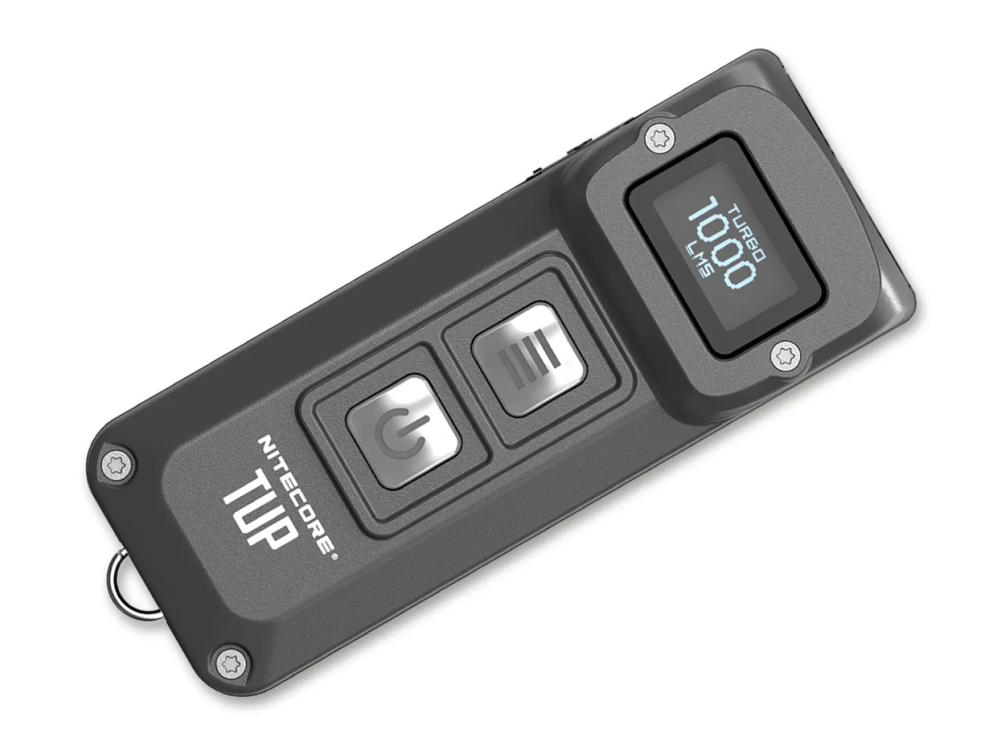 Mit der TUP präsentiert Nitecore den neuen King unter den Schlüsselbundlampen. Mit 1000 Lumen Maximalleistung, einem OLED-Display und einem integrierten Li-Ion-Akku mit 1200 mAh läßt die TUP keine Wünsche offen! Das Display informiert über die Lichtleistung, die aktuelle Akkuspannung, die Restlaufzeit und den gewählten Modus, und die Bedienung über die beiden Schalter ermöglicht die Regelung der 5 Lichtstufen (1000/200/65/15/1 Lumen) ebenso wie den Direktzugriff auf Turbo und Low. Zweistufige Schaltersperre, die wahlweise noch den Direktzugriff auf Turbo ermöglicht oder die Lampe komplett sichert. Zwei Betriebsarten wählbar (30 Sekunden Auto-Off oder manuelle Abschaltung). Aluminiumgehäuse mit USB-Ladebuchse, abnehmbarem Edelstahlclip und Schlüsselring mit Karabiner. Länge 70 mm. Kopfdurchm. 30 mm. Gew. 53 g.