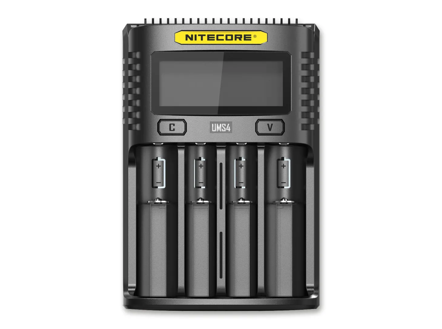 USB-Vierschacht-Schnellladegerät für alle gängigen Lampenakkus. Ladestrom bis zu 3A bei einem belegten Schacht, 1A bei 4 belegten Schächten. Display mit allen relevanten Statusinformationen und Energiesparfunktion. Mit Reaktivierungsfunktion für tiefentladene Li-Ion-Akkus. Passend für Li-Ion, IMR, NiCd und NiMH-Akkus (18650, 16340, 26500, 14500, 18350, AA, AAA, C, D etc.). Maße 159 mm x 407 mm x 41 mm.