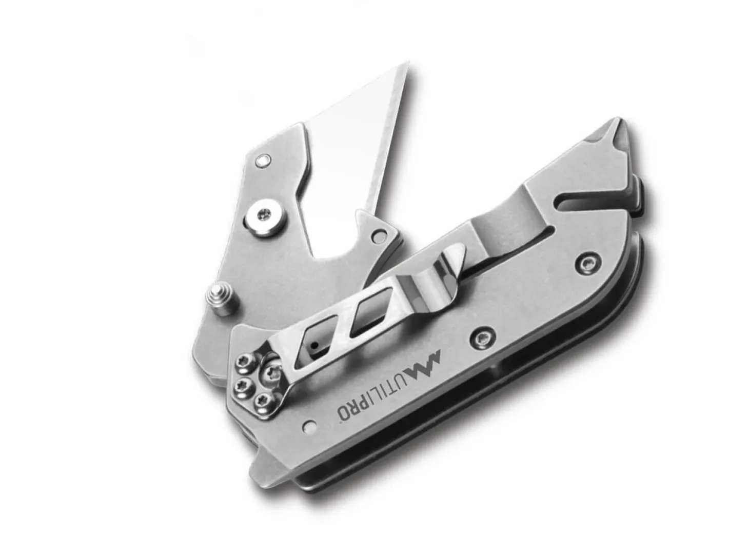 Messer oder Multitool? Das UtiliPro vereint die Vorzüge beider Welten. Das kompakte Messer erinnert im ersten Moment an ein Cuttermesser, jedoch ist hier die Wechselklinge einklappbar. Per Daumenpin wird das Taschenmesser geöffnet, während der robuste Edelstahl Frame Lock den Klingenhalter zuverlässig hält. Der orangene Griff aus GRN liegt seiner Texturierung stets sicher in der Hand. Zusätzliche Flexibilität beweist das UtiliPro mit dem integrierten Gurtschneider, Kapselheber, Schraubendreher (Schlitz + Kreuzschlitz) sowie einen Tip-Down Clip.