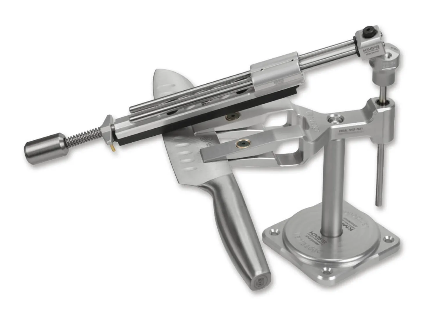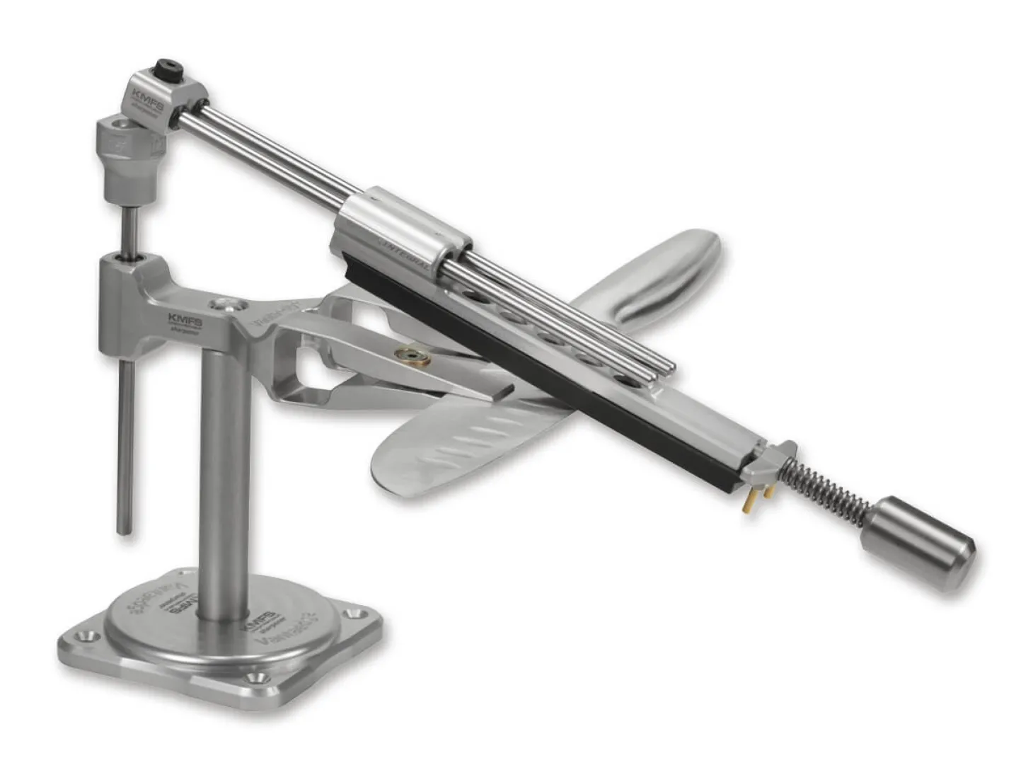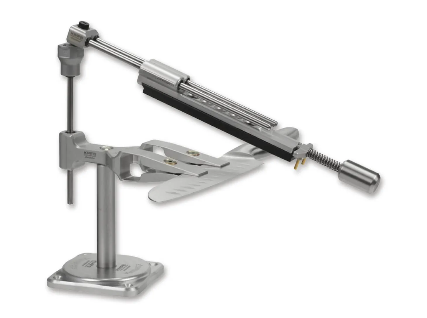 Der KMFS Vantaedge Integral darf im Segment der manuellen Messerschärfer als wegweisend betrachtet werden. Das komplett in der Tschechischen Republik entwickelte und hergestellte Schärfgerät ist das erste seiner Art, das ein absolut präzises Schärfebild des Messers reproduzieren kann, ohne dabei die exakt gleiche Einspannposition des Messers für das Schärfen einzufordern. Die größte Neuerung besteht in der umgekehrten Kinematik, bei der das System auf der Grundlage des exakten Winkels am Messer die anderen Komponenten des Sets so einstellt, dass der Winkel am Messer unabhängig von der Tiefe der Messerspannung immer gleich ist. Das Schleifsystem des Sets umfasst einen Kopf mit Schleifwinkeln von 15°, 17,5°, 20° und 22,5°, die entlang der gesamten Klinge und bei jedem Schliff genau eingehalten werden. Dank der vollständig aus einem massiven Block Aluminium gefrästen Integral-Spannvorrichtung werden eine absolut präzise Ausrichtung des Messers, maximale Festigkeit sowie ein leichtes Einspannen erreicht. Ermöglicht wird dies durch eine doppelte Klemmhalterung, die unerwünschte Klemmkräfte eliminiert und sich perfekte an das Profil der Messerklinge anpasst. Die maximal mögliche Klingenstärke beträgt 8 mm; die maximale Klingenlänge, die in einer Aufspannung geschliffen werden kann, beträgt 20 – 25 cm. Lieferung mit je einer Diamantschleifplatte der Körnung 240, 600 und 1000, Pflegeöl zur Wartung sowie einem robusten Kunststoff-Case zur Aufbewahrung.