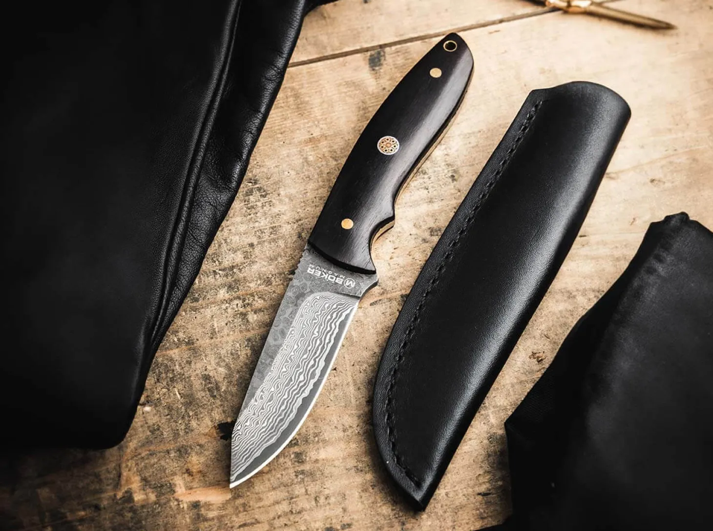 Exklusive Ausstattung, inklusive Leidenschaft! Böker begegnet dem Endorphinmangel messerbegeisterter Enthusiasten mit einer fein abgestimmten Dosis ausgesuchter Wirkstoffe: Eine edle Droppoint-Klinge aus 67-lagigem Damast im Two-Tone Muster, charakteristisches Ebenholz als Griffmaterial und ein unschlagbarer Preis entfalten beim Magnum Vernery Damast das Extra an Klasse. Das Outdoormesser eignet sich ideal fürs Camping, Bushcrafting oder die Jagd. Vollerlbauweise und der konturierte Griff des Fahrtenmessers sorgen jederzeit für Stabilität und sicheren Halt, wenn es darauf ankommt. Abgerundet wird das edle Erscheinungsbild durch die kontrastierenden Messingnieten im Griff, von denen besonders die mittlere, im aufwändig gestalteten Mosaikmuster hervorsticht. Ebenfalls aus Messing ist die Fangriemenöse, welche die Befestigung von Lanyards vorsieht. Das feststehende Messer wird mit einer hochwertigen Lederscheide ausgeliefert. Garantiert rezeptfrei und ein absolutes Damast-Have für jeden Messerfan!