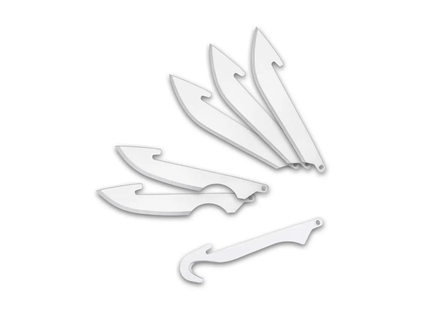 Set bestehend aus sechs Wechselklingen für das RazorSafe System. Die Jagdmesser-Klingen bestehen aus hochfestem 420J2 Stahl. Das Set enthält drei vielseitige Droppoint-Klingen, zwei Häutungsklingen und eine Aufbruchklinge.