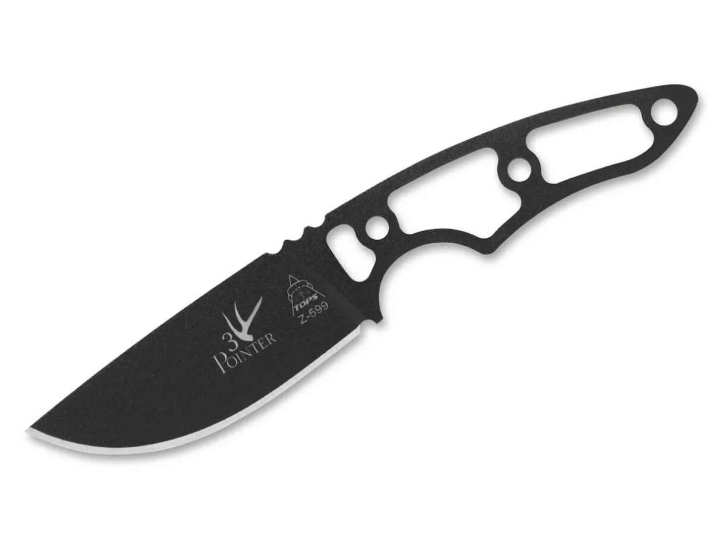 Dieser eindrucksvolle Entwurf von Leo Espinoza überzeugt durch seine Vielseitigkeit bei gleichzeitig asketischer Anmutung. Denn das Messer kann als Alltagsmesser (EDC), Jagdmesser oder als Neck Knife verwendet werden. Das bewusste Weglassen der Griffschalen sorgt für eine Gewichtsersparnis und untermalt damit den markanten Charakter des Skelettmessers. Das in einem Stück gefertigte TOPS 3-Pointer hat eine Klinge aus 1095 Kohlenstoffstahl und ist mit einer rostbeständigen schwarzen Beschichtung versehen. Die ergonomischen Mulden im Griff ermöglichen ein sicheres Arbeiten. Mit passgenauer Kydexscheide.