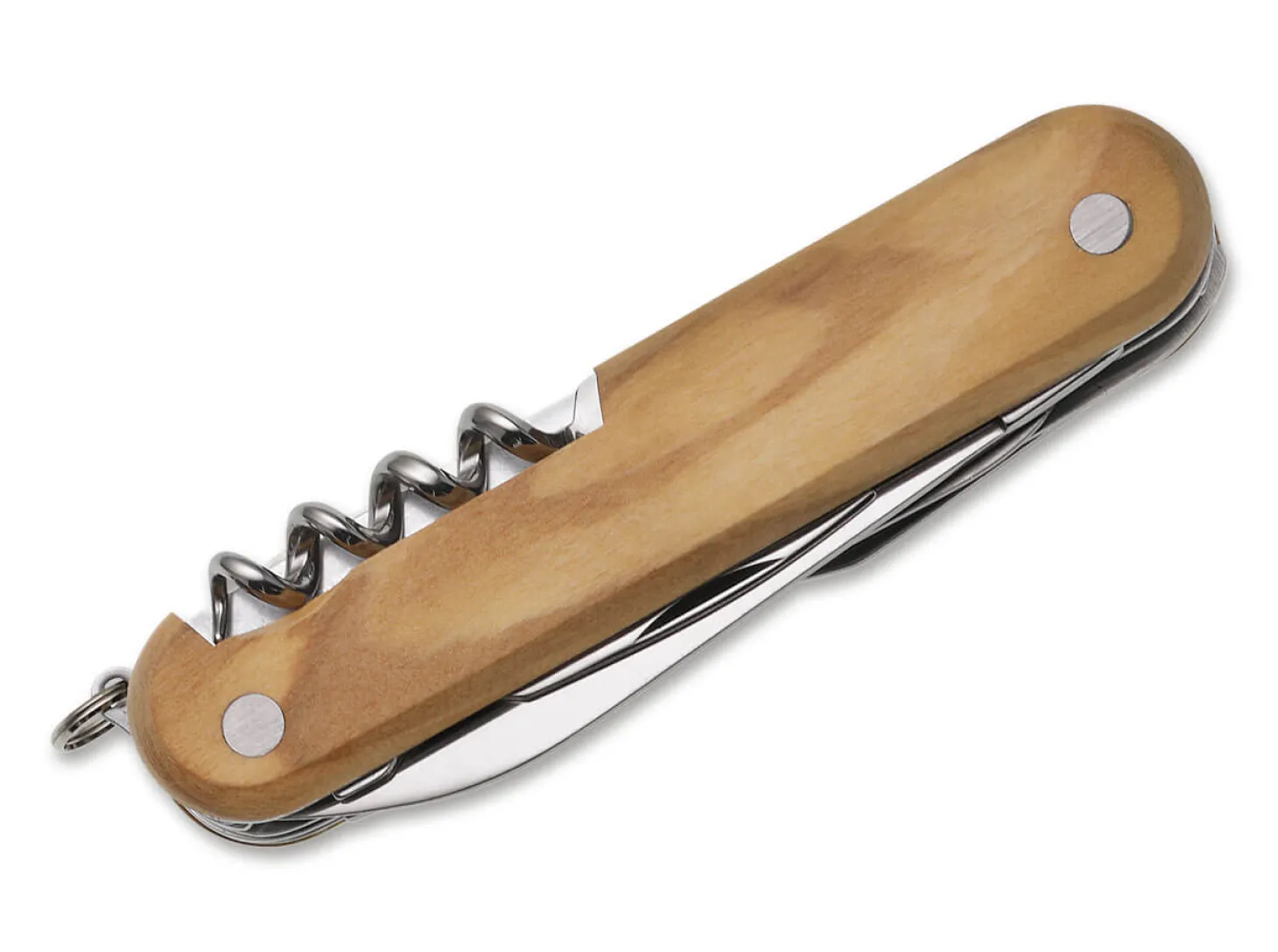 Das Mercury 913-8LC setzt auf Understatement und punktet mit seiner eleganten Schlichtheit. Das klassische Messer öffnet die Klinge aus 420 per Nagelhau und verriegelt nicht. Korkenzieher, Kapselheber, Dosenöffner, Ahle, Gabel, Säge und Schere machen das Slipjoint Messer zu einem unverzichten Begleiter für den Alltag. Guten Halt versprechen die balligen Griffschalen aus Olivenholz. Mit Fangriemenöse.