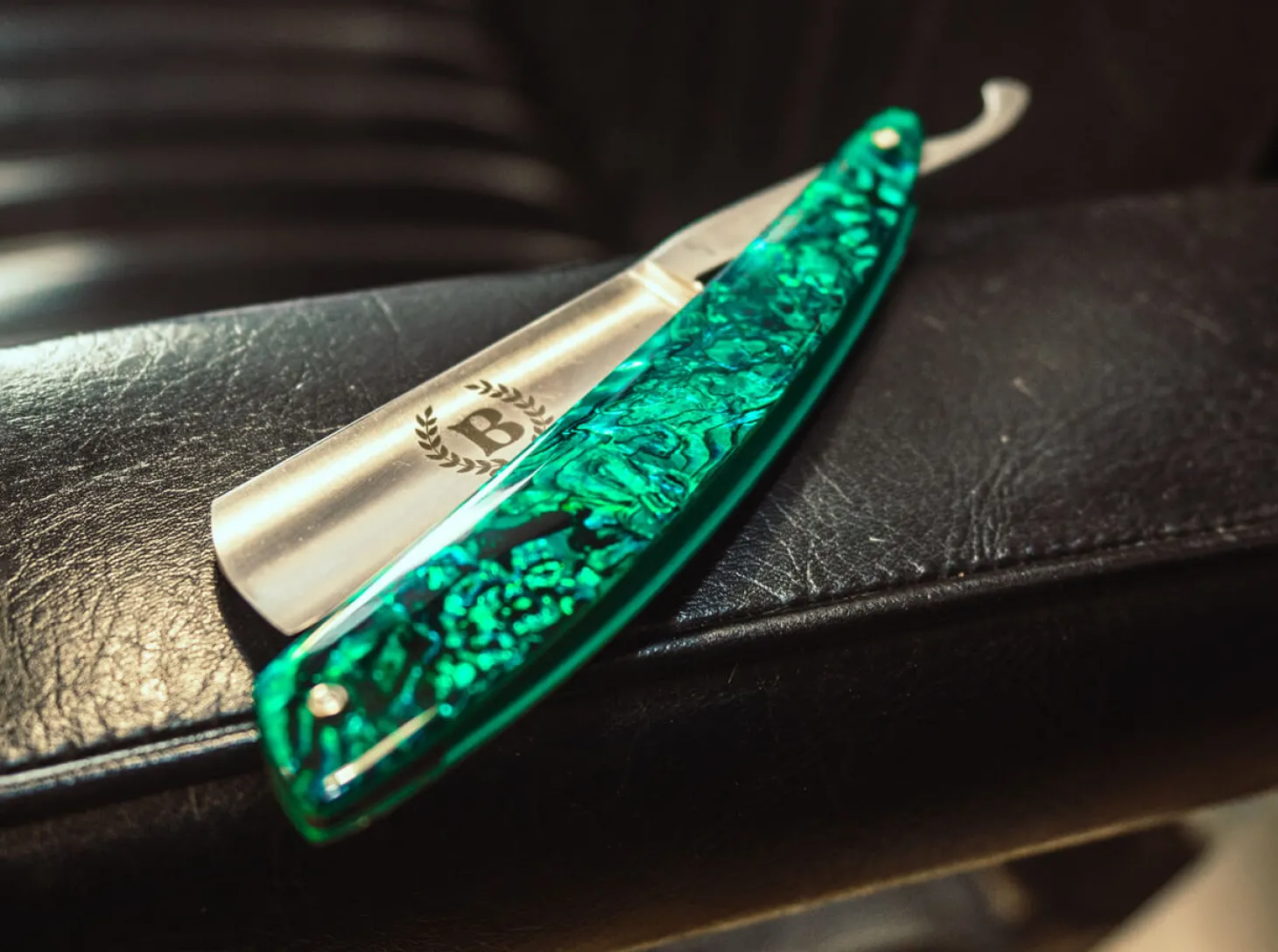 Das Böker Abalone vereint eine außergewöhnliche Optik mit einer herausragenden Performance. Die im Gesenk geschmiedete Klinge dieses Ausnahmemessers wird aus dem Kohlenstoffstahl O1 (1.2510) gefertigt und auf 59-61 HRC gehärtet. Aufgrund seiner überlegenen Eigenschaften und seiner exzellenten Schnitthaltigkeit eignet sich dieser Kohlenstoffstahl hervorragend für hochwertige Rasiermesser. Neben klassischen Materialien, die seit vielen Jahrzehnten die beliebten Modelle des Böker Rasiermessersortiments prägen, sind wir kontinuierlich auf der Suche nach modernen und innovativen Naturmaterialkombinationen, die aufgrund ihrer besonderen Anmutung oder Haptik für Begeisterung sorgen. Weißes Gold, Seeschnecken, See- oder Meerohren sind nur einige Synonyme für Abalone.Die Weichtiere, die sich vor den Küsten in Australien, Neuseeland, Japan, China, Mexiko und in Südafrika einige Meter unter der Wasseroberfläche festsaugen, gelten als Delikatesse und haben aufgrund ihrer Begehrlichkeit in der Vergangenheit ganze Bandenkriege ausgelöst. Heute wird das kostbare Naturprodukt in Aquakulturfarmen gezüchtet. Die wunderschönen und fast schon künstlich schimmernden Schalen dieser beliebten Weichtiere werden seit jeher als Dekorationsobjekt, als Gebrauchsgegenstand oder als Ausgangsmaterial für Schmuck, Intarsien oder Perlmutt-Spangen verwendet. Durch die Verwendung modernster Fertigungsverfahren wird eine hauchdünne Schicht bunter Abalone auf ein Trägermaterial aufgebracht und mit transparentem Acryl umgossen. Das so gewonnene, sehr widerstandsfähige Material eignet sich hervorragend für die Fertigung der Rasiermesserhefte und begeistert durch ein außergewöhnliches Farbenspiel und eine dreidimensionale Optik.Die 6/8 Zoll breite Klinge dieses außergewöhnlichen Rasiermessers wird extra hohl auf Klang ausgeschliffen und mit einer beidseitigen Serrierung ausgestattet. Der französische Kopf der Rasiermesserklinge aus dem Kohlenstoffstahl O1 fügt sich harmonisch in das außergewöhnliche Heft aus Abalone ein. Die schlichte Lasergravur geht zurück auf eine historische Klingenätzung, die bereits Anfang des 20. Jahrhunderts für besonders ausgefallene Rasiermesser von Böker verwendet wurde. Auslieferung in einem hochwertigen Rahmenetui und mit Echtheitszertifikat.