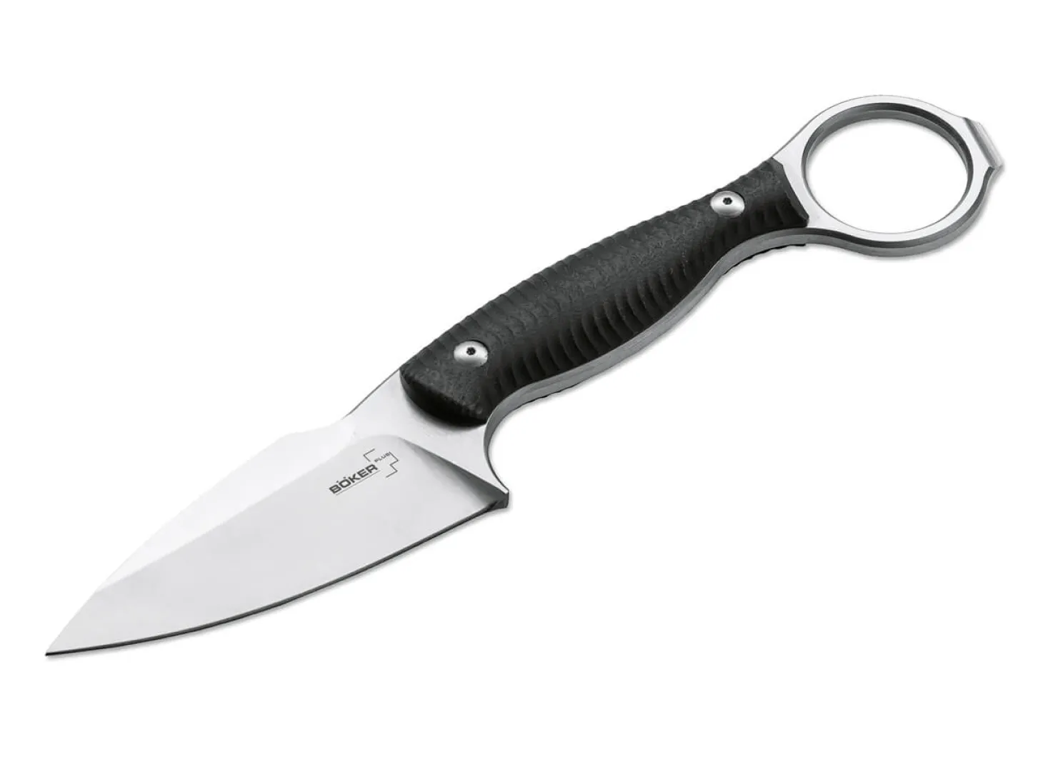 Das Böker Plus Accomplice von John Gray ist ein sehr kompaktes und führiges EDC- oder Backup-Messer, das mit seinem schlanken Griff und dem Ring am Griffende hohen Tragekomfort mit Diskretion und einer ausgezeichneten Handlage verbindet. Es kann auch als großes Neck Knife getragen werden. Die G10-Beschalung ist mit einer griffigen Strukturfräsung versehen und voll konturiert, wodurch sich das Accomplice geradezu in die Hand schmiegt. Die Klinge wird aus 14C28N Sandvik gefertigt und ist entgegen der Katalogangabe mit einem Satin-Finish versehen. Lieferung mit Kydexscheide und großem Gürteladapter.