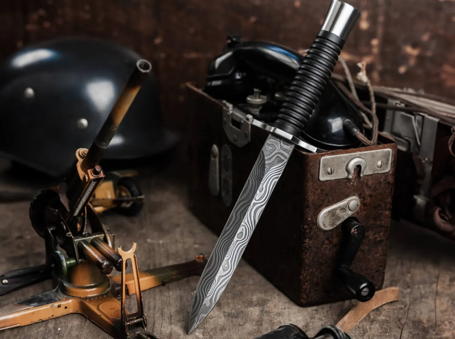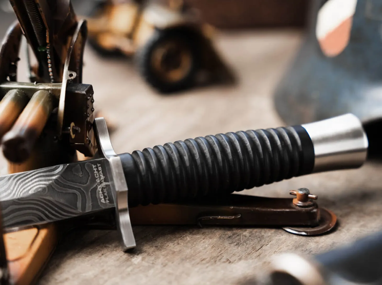 Mit dem Sammlerdolch Acht-Acht Flak Damast präsentiert Böker sein erstes militärhistorisches Projekt der Waffengattung Artillerie. Die 8,8-cm-Flak (Flak kurz für Flugabwehrkanone) gilt vielen Kennern als bestes und ganz unbestritten als vielseitigstes Geschütz des 2. Weltkrieges.War die Acht-Acht ursprünglich zur Flugabwehr entwickelt worden, begründete sie ihren legendären Ruf vor Allem im Erdkampf. Während Panzerabwehrkanonen mit 3,7 cm bis maximal 7,5 cm für die zeitgenössischen Panzerungen notorisch unterkalibriert waren, hatten Flak regelmäßig relativ große Rohrdurchmesser. Es zeigte sich schnell, dass nur die Acht-Acht in der Lage war, die Panzerungen beispielsweise des schweren britischen Panzers Matilda II oder des sowjetischen T-34 zuverlässig und vor Allem auch auf größere Entfernungen von bis zu 2.000 Metern zu durchschlagen. Voraussetzung hierfür war, dass das Rohr der 8,8-cm-Flak – für eine Flak absolut untypisch – in einen negativen Neigungswinkel geschwenkt werden konnte. Somit war es möglich, das Rohr unter die horizontale Ebene zu senken, um Bodenziele zu bekämpfen. Auf einer Säulenlafette mit vier kreuzförmigen Auslegern war das Geschütz zudem 360° um seine Hochachse schwenkbar. Ein weiterer Vorteil der Acht-Acht war ihre Schnelligkeit. Diese resultierte zum einen in der kurzen Zeit, in der die Kreuzlafette auf- und abgebaut und das Geschütz also verlegt werden konnte. Zum anderen lag sie in der hohen Feuerrate. Bei der Bauart als halbautomatische Kanone mit gebremstem Rohrrücklauf war nach jedem Schuss der Verschluss geöffnet, das Schlagstück gespannt und die leere Kartusche ausgeworfen. Eine eingespielte Bedienungsmannschaft, die i. d. R. aus 9 Soldaten bestand, konnte so bis zu 20 Schuss pro Minute abfeuern. Das führte dazu, dass die deutschen Flak-Soldaten 9 von 1.000 einfliegenden Maschinen abschießen konnten. Diese Zahl erscheint ernüchternd klein, gilt aber immer noch als die höchste Abschussquote einer Fliegerabwehr in der Kriegsgeschichte. Die 8,8-cm-Flak hatte auch wesentlichen Anteil am legendären Ruf einer anderen Waffe des 2. Weltkrieges, die Böker bereits in einem Damast-Sammlermesser verarbeitet hat. Als Hauptbewaffnung war sie verbaut im Turm des Panzerkampfwagen VI, besser bekannt als Tiger. Durch diese Verwendung bewährt, wurde sie später ebenso das Geschütz des Jagdpanzers Nashorn. Das Projekt Acht-Acht Flak Damast ist als ausgewachsener Dolch mit mittelalterlicher Anmutung realisiert. Das Herzstück bildet die schlanke, aber massive 18,1 cm lange aus Teilen der 8,8-cm- Flak geschmiedete Klinge. Die Griffrolle wird aus einem Stück heimischer stabilisierter Hainbuche mit 16 Rillen gedreht. Radien und Proportionen des 5 mm starken Parierstücks aus rostfreiem Edelstahl bilden bei genauem Hinsehen dezent den Umriss der Kreuzlafette mit zum Transport hochgeklappten Seitenauslegern. Die Silhouette der ausgeklappten Lafette ist auf dem Boden des massiven Abschlussknaufes aus Edelstahl angedeutet. Der Dolch ist ausgestattet mit einer Scheide aus dunkelbraunem Leder mit Gürtelschlaufe und Ortverstärkung. Auslieferung mit edler Aufbewahrungsbox, Echtheitszertifikat und individueller Seriennummer.