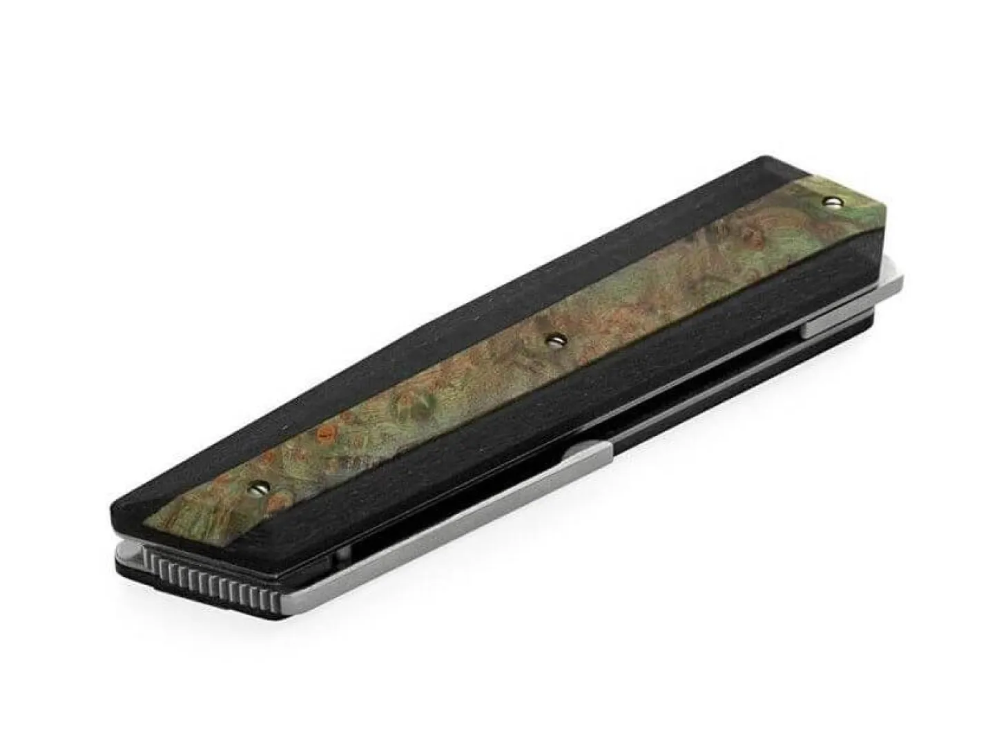 Das AM4 ist modernes Gentlemen-Messer des italienischen Herstellers Maserin, dass trotz der äußerst eleganten Erscheinung allen Aufgaben des Alltags gewachsen ist. Die satinierte Tanto-Klinge aus M390 ist kugelgelagert und wird komfortabel per Flipper geöffnet. Die Verriegelung übernimmt ein klassischer Linerlock. Die Griffschalen bestehen aus moderner Kohlefaser und sind mit Einlagen aus gefärbtem Wurzelholz versehen. Mit Clip.