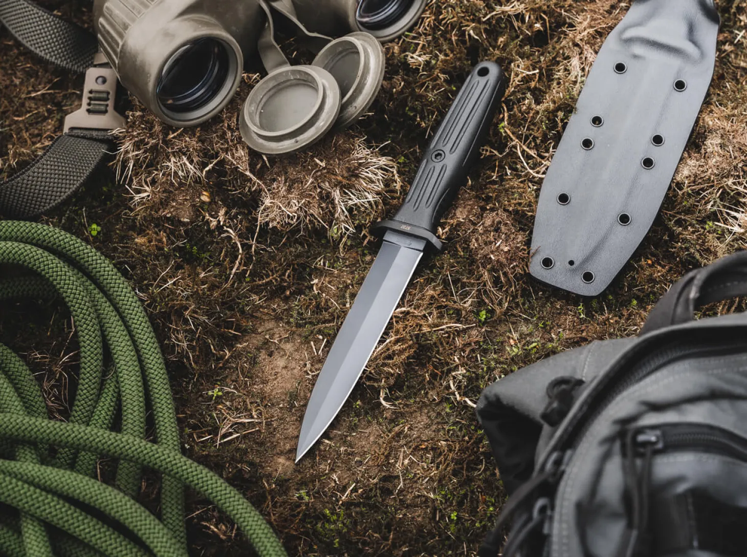 Das Böker Applegate-Fairbairn überzeugt in seinen verschiedenen Ausführungen seit Jahren Einsatzkräfte auf der ganzen Welt und hat so mittlerweile den Status einer echten Ikone erreicht. Das taktische Einsatzmesser geht auf den klassischen Fairbairn-Sykes-Dolch aus dem 2. Weltkrieg zurück und wurde von Col. Rex Applegate entworfen. Der Elitesoldat koordinierte während des Krieges geheime Operationen in ganz Europa und wurde sogar zur persönlichen Bewachung von Präsident Franklin D. Roosevelt eingesetzt. Er trainierte Spezialeinheiten der Alliierten im Nahkampf und gründete die „School for Spies and Assassins“ im heutigen Camp David. Später arbeitete er weiter als Berater und Ausbilder, schrieb zahlreiche Bücher über Nahkampftechniken und begann mit der Entwicklung und Verbesserung des perfekten Kampfmessers.Das Böker Applegate-Fairbairn Black ist das offizielle Kampfmesser bundesdeutscher Spezialeinheiten. Die Zugriffskräfte von Polizei und Bundeswehr wissen die besonderen Vorzüge der komplett schwarzen Version im Einsatz zu schätzen. Der glasfaserverstärkter Kunststoffgriff mit integrierten Edelstahlgewichten liegt sicher in der Hand, der Messingknebel und die 440C-Klinge mit schwarzer Titan-Aluminium-Nitrid-Beschichtung sind jeder Aufgabe gewachsen. Lieferung inklusive Kydexscheide und großem Gürteladapter.