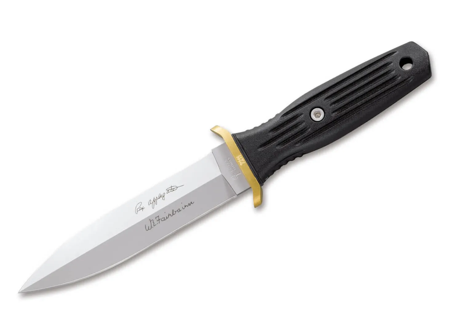 Das Böker Applegate-Fairbairn überzeugt in seinen verschiedenen Ausführungen seit Jahren Einsatzkräfte auf der ganzen Welt und hat so mittlerweile den Status einer echten Ikone erreicht. Das taktische Einsatzmesser geht auf den klassischen Fairbairn-Sykes-Dolch aus dem 2. Weltkrieg zurück und wurde von Col. Rex Applegate entworfen. Der Elitesoldat koordinierte während des Krieges geheime Operationen in ganz Europa und wurde sogar zur persönlichen Bewachung von Präsident Franklin D. Roosevelt eingesetzt. Er trainierte Spezialeinheiten der Alliierten im Nahkampf und gründete die „School for Spies and Assassins“ im heutigen Camp David. Später arbeitete er weiter als Berater und Ausbilder, schrieb zahlreiche Bücher über Nahkampftechniken und begann mit der Entwicklung und Verbesserung des perfekten Kampfmessers.Die kleinere und damit handlichere Ausführung des Böker Applegate-Fairbairn ist nach dem gleichen Konzept entwickelt worden, wie die Urversion. Der glasfaserverstärkte Kunststoff-Griff mit integrierten Edelstahlgewichten liegt sicher in der Hand, der Messing-Knebel sorgt für zusätzliche Sicherheit. Die Klinge aus 440C verfügt auf der einen Seite über einen typischen doppelkonischen Dolchschliff und auf der anderen Seite über einen Hohlschliff. Lieferung mit praktischer Kydex-Scheide und passendem Gürteladapter.